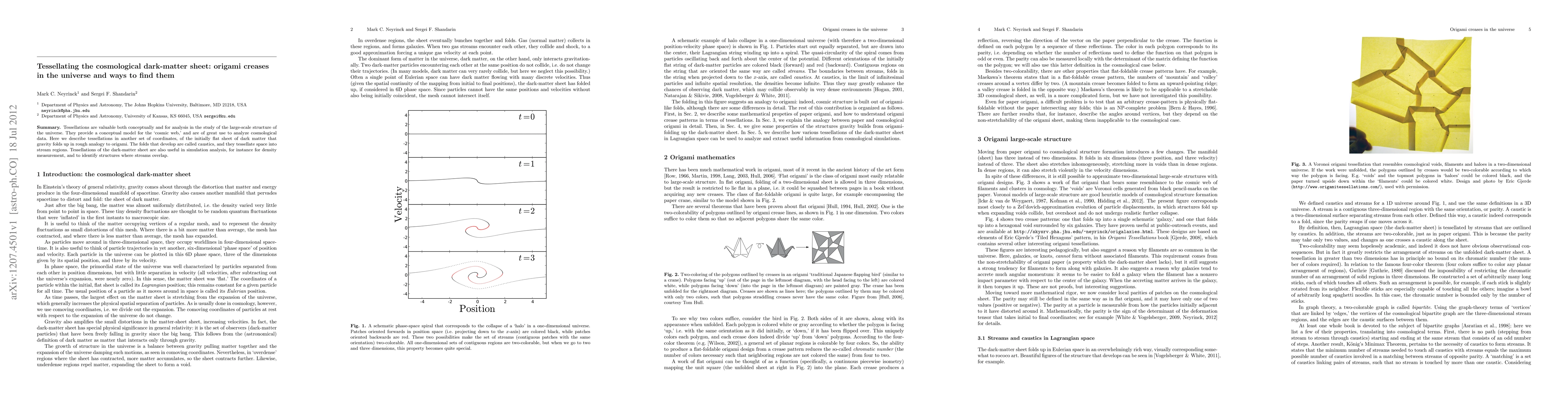 This paper explores the tessellation of the cosmological dark-matter sheet, likening it to origami folds known as caustics. These folds create stream regions that help in analyzing the large-scale structure of the universe and are useful for density measurements and identifying overlapping streams in simulations.
