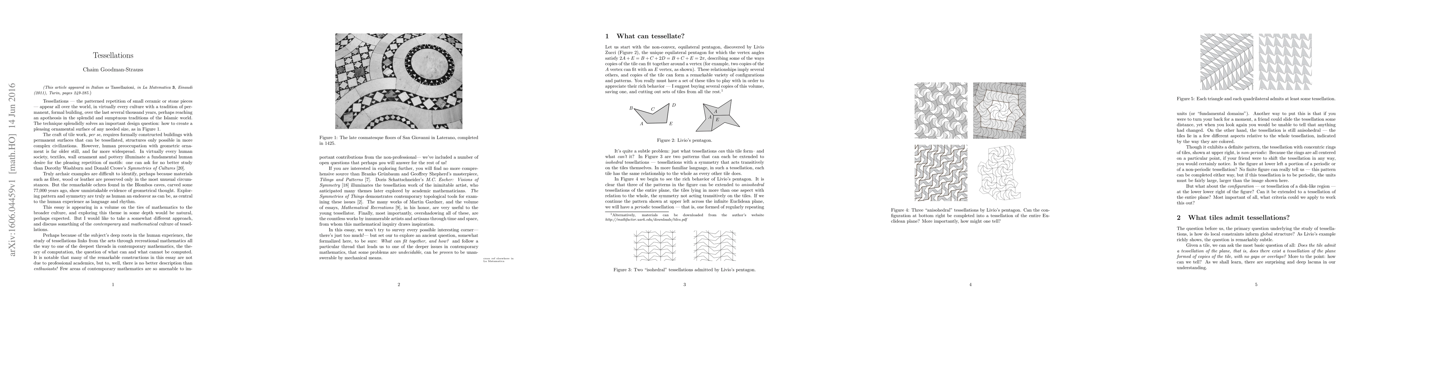 Summary: This paper surveys various tessellations and introduces the novel Tiling Lemma for the first time, originally published in Italian in La Matematica vol 3 in 2010. The Tiling Lemma presents a new framework for understanding tessellation patterns.