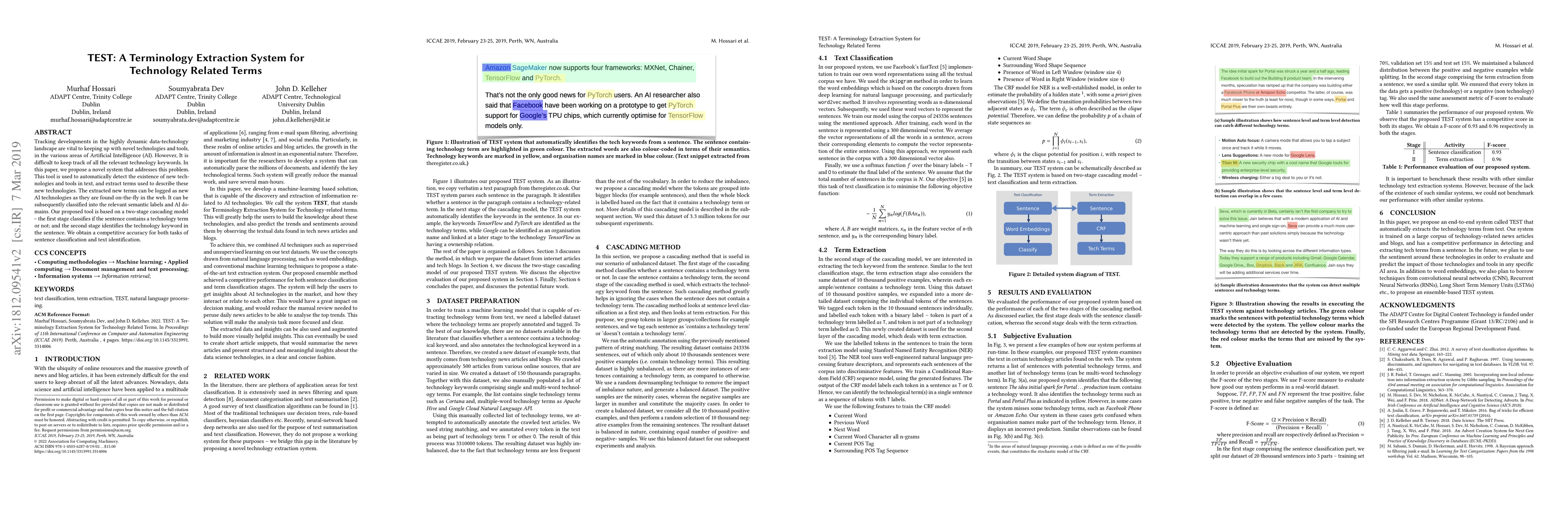 Tracking developments in the highly dynamic data-technology landscape are vital to keeping up with novel technologies and tools, in the various areas of Artificial Intelligence (AI). However, It is difficult to keep track of all the relevant technology keywords. In this paper, we propose a novel system that addresses this problem. This tool is used to automatically detect the existence of new technologies and tools in text, and extract terms used to describe these new technologies. The extracted new terms can be logged as new AI technologies as they are found on-the-fly in the web. It can be subsequently classified into the relevant semantic labels and AI domains. Our proposed tool is based on a two-stage cascading model -- the first stage classifies if the sentence contains a technology term or not; and the second stage identifies the technology keyword in the sentence. We obtain a competitive accuracy for both tasks of sentence classification and text identification.