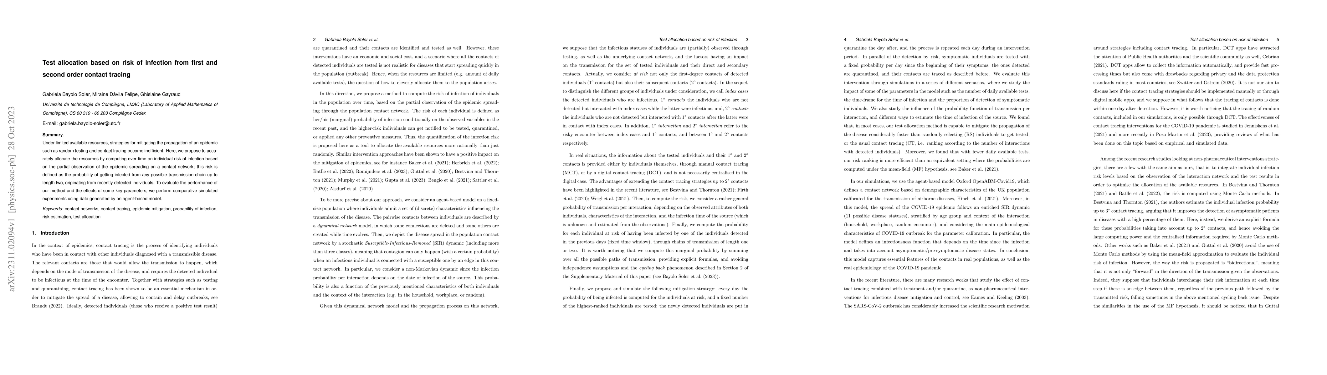 This paper proposes a method to allocate limited testing resources by assessing individual infection risk based on observed transmission chains up to length two, aiming to efficiently mitigate epidemic spread. Simulation results using an agent-based model evaluate the method's performance and sensitivity to key parameters.