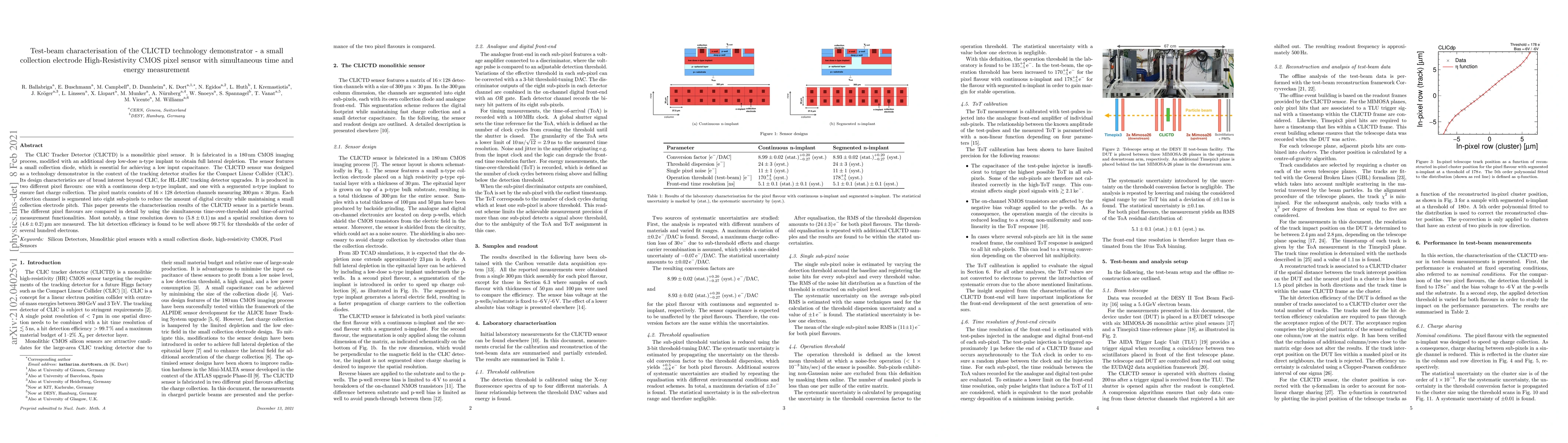 This paper characterizes the CLICTD, a small collection electrode High-Resistivity CMOS pixel sensor designed for simultaneous time and energy measurement, showing a time resolution of $(5.8 \pm 0.1)$ ns and a spatial resolution of $(4.6 \pm 0.2)$ microns, with a detection efficiency above 99.7%.