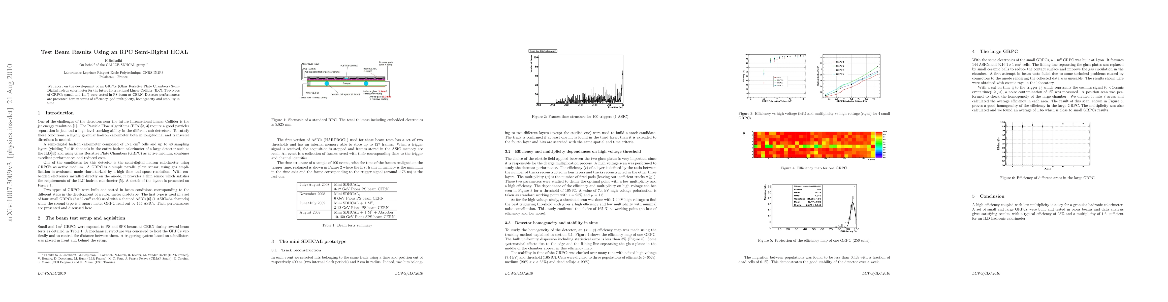 We report on the development of an GRPCs (Glass Resistive Plate chambers) Semi- Digital hadron calorimeter for the future International Linear Collider (ILC).Two types of GRPCs (small and 1m2) were tested in PS beam at CERN. Detector performances are presented here in terms of efficiency, pad multiplicity, homogeneity and stability in time.