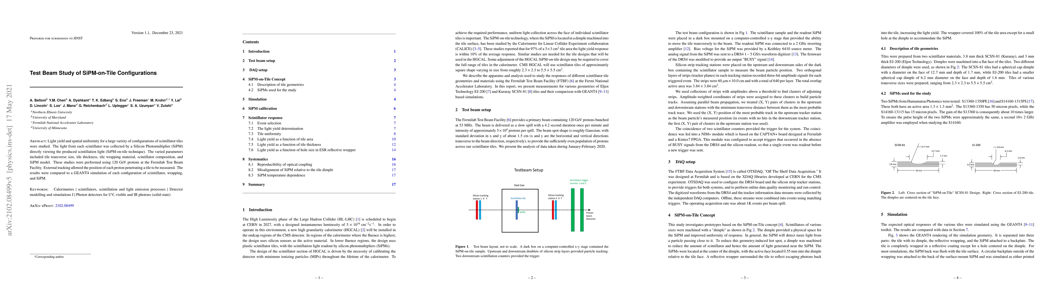 This paper investigates various configurations of scintillator tiles coupled with Silicon Photomultipliers (SiPMs) to optimize light yield and spatial uniformity, using a Fermilab Test Beam Facility. Results are validated against GEANT4 simulations, considering factors like tile size, thickness, wrapping material, and SiPM model.