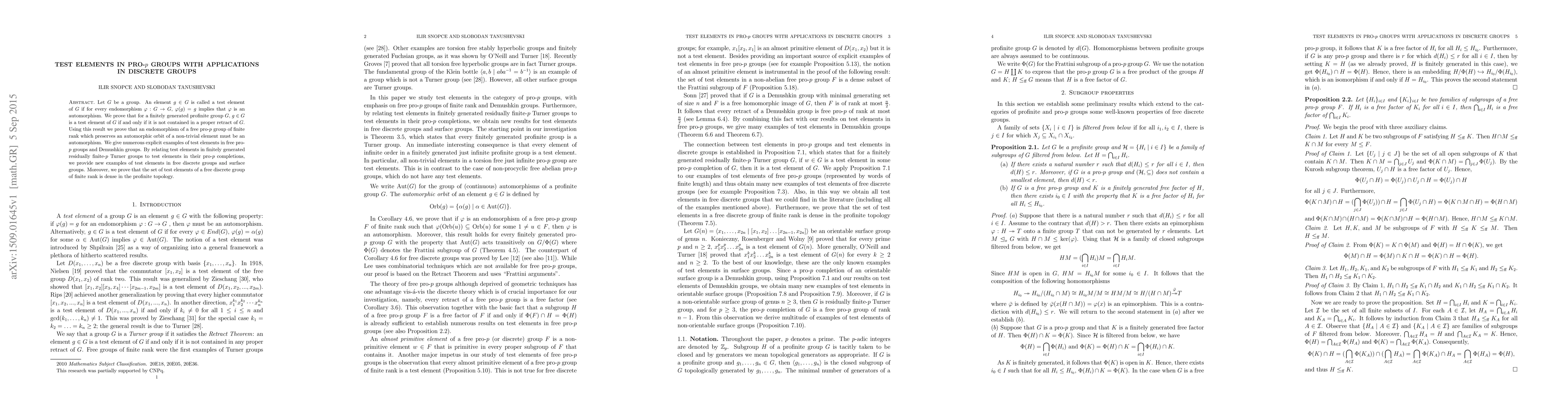 Let $G$ be a group. An element $g \in G$ is called a test element of $G$ if for every endomorphism $\varphi:G \to G$, $\varphi(g)=g$ implies that $\varphi$ is an automorphism. We prove that for a finitely generated profinite group $G$, $g \in G$ is a test element of $G$ if and only if it is not contained in a proper retract of $G$. Using this result we prove that an endomorphism of a free pro-$p$ group of finite rank which preserves an automorphic orbit of a non-trivial element must be an automorphism. We give numerous explicit examples of test elements in free pro-$p$ groups and Demushkin groups. By relating test elements in finitely generated residually finite-$p$ Turner groups to test elements in their pro-$p$ completions, we provide new examples of test elements in free discrete groups and surface groups. Moreover, we prove that the set of test elements of a free discrete group of finite rank is dense in the profinite topology.