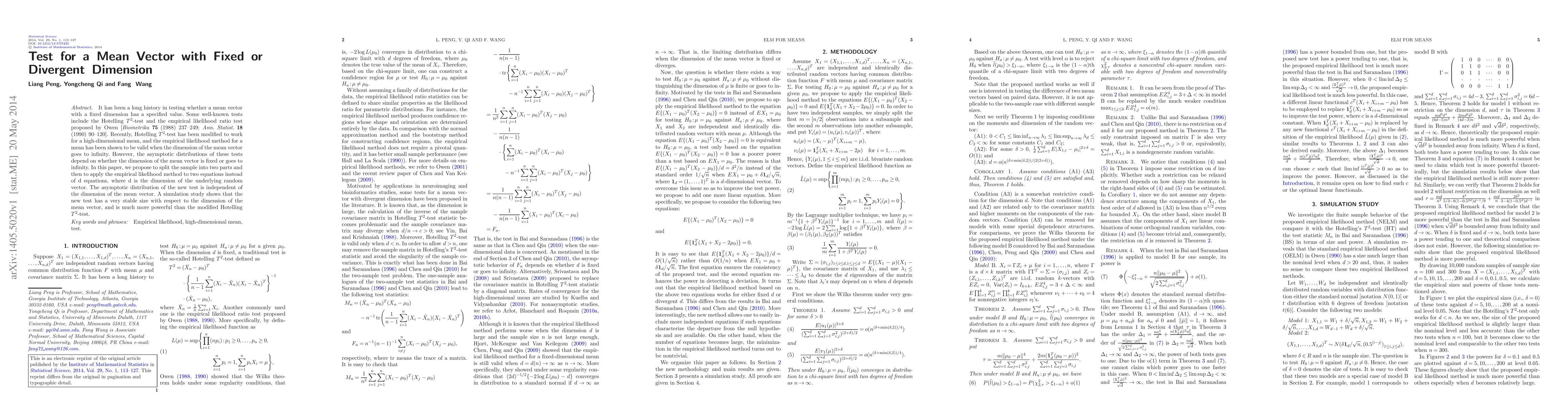 This paper proposes a new test for a mean vector that can handle both fixed and divergent dimensions, using an empirical likelihood method applied to split samples. The new test's asymptotic distribution is dimension-independent, demonstrating stable size and greater power compared to the modified Hotelling $T^2$-test, as shown by simulation.