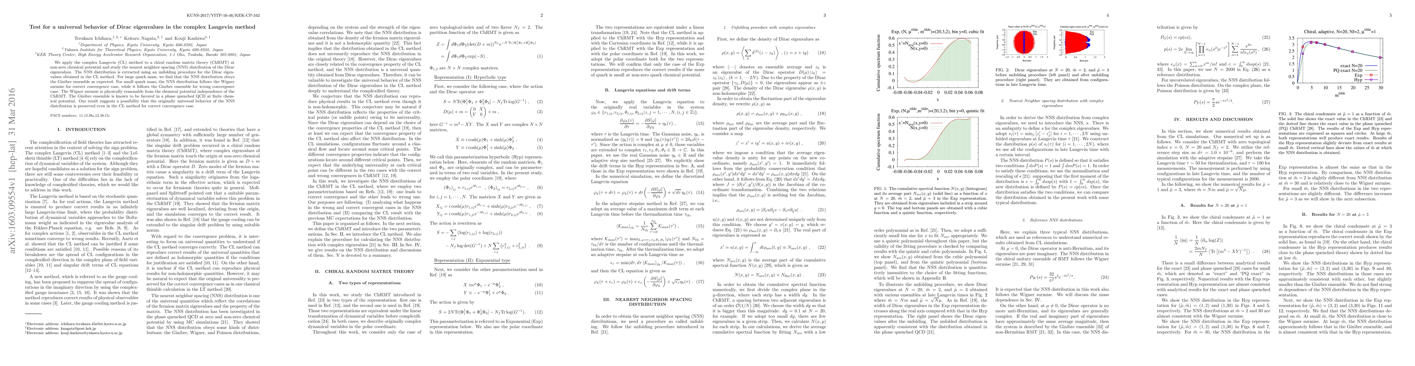 We apply the complex Langevin (CL) method to a chiral random matrix theory (ChRMT) at non-zero chemical potential and study the nearest neighbor spacing (NNS) distribution of the Dirac eigenvalues. The NNS distribution is extracted using an unfolding procedure for the Dirac eigenvalues obtained in the CL method. For large quark mass, we find that the NNS distribution obeys the Ginibre ensemble as expected. For small quark mass, the NNS distribution follows the Wigner surmise for correct convergence case, while it follows the Ginibre ensemble for wrong convergence case. The Wigner surmise is physically reasonable from the chemical potential independence of the ChRMT. The Ginibre ensemble is known to be favored in a phase quenched QCD at finite chemical potential. Our result suggests a possibility that the originally universal behavior of the NNS distribution is preserved even in the CL method for correct convergence case.