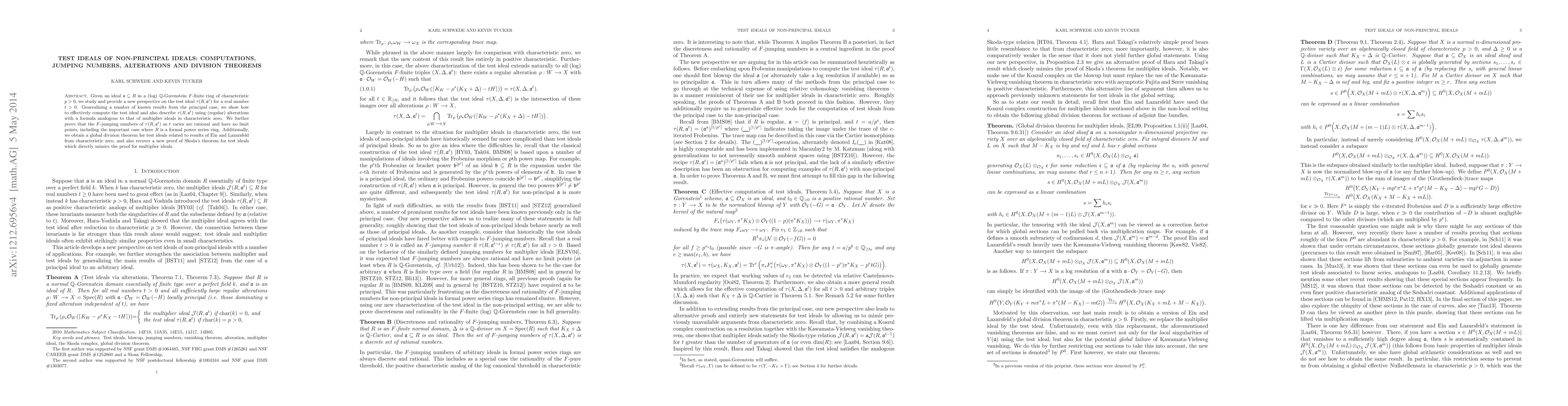 This paper studies the test ideal $\tau(R, a^t)$ for non-principal ideals $a$ in $F$-finite rings of characteristic $p > 0$, providing new computational methods and a connection to alterations. It also proves that the $F$-jumping numbers are rational and establishes a global division theorem for test ideals.