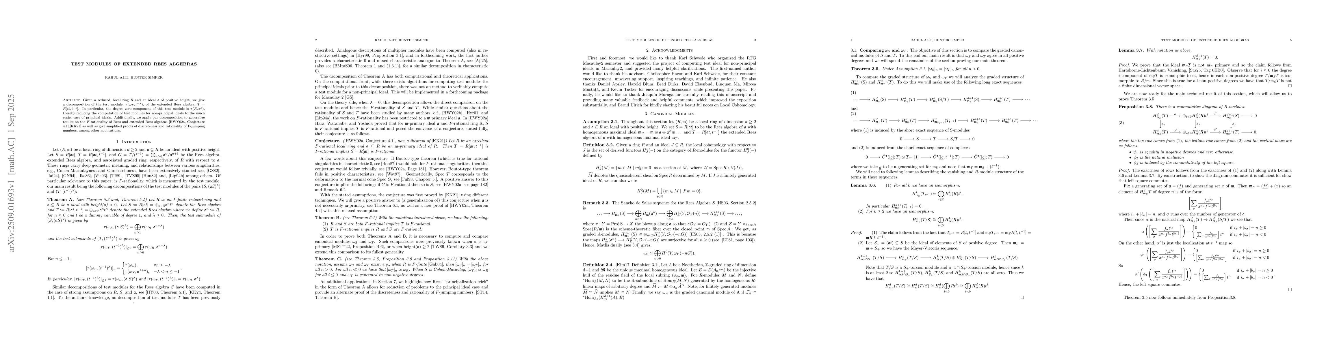 Given a reduced, local ring $R$ and an ideal $\mathfrak{a}$ of positive height, we give a decomposition of the test module, $\tau(\omega_T, t^{-\lambda})$, of the extended Rees algebra, $T =R[\mathfrak{a} t, t^{-1}]$. In particular, the degree zero component of this test module is $\tau(R, \mathfrak{a}^\lambda)$, thereby reducing the computation of test modules for non-principal ideals to the much easier case of principal ideals. Additionally, we apply our decomposition to generalize results on the $F$-rationality of Rees and extended Rees algebras [HWY02a, Conjecture 4.1],[KK21] as well as give simplified proofs of discreteness and rationality of F-jumping numbers, among other applications.