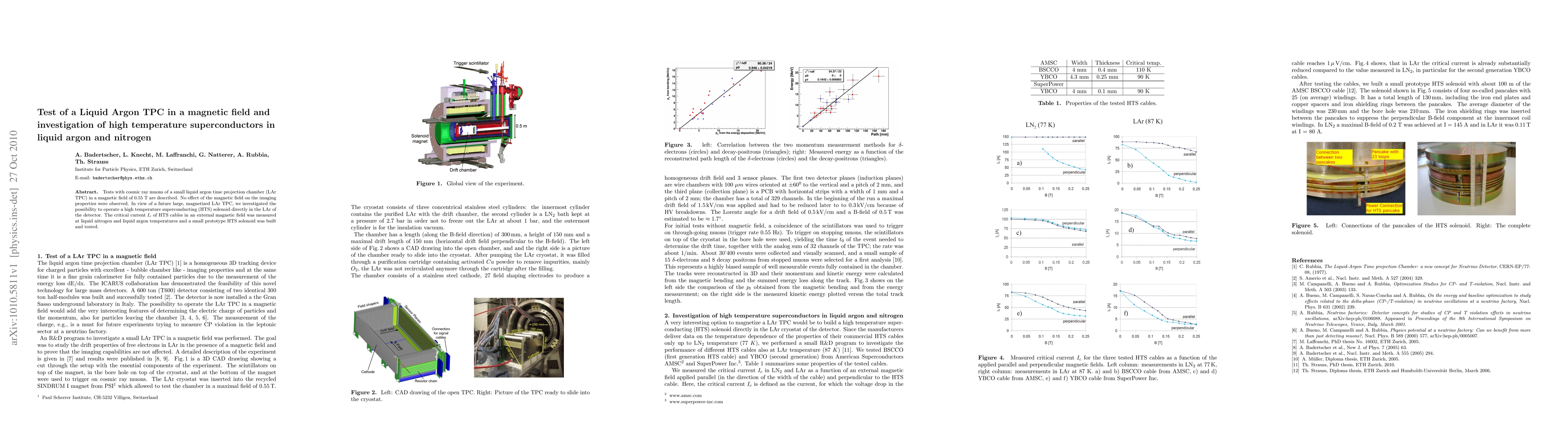 This paper tests a small liquid argon time projection chamber (LAr TPC) in a magnetic field, finding no impact on imaging properties. It also investigates the feasibility of using high-temperature superconducting (HTS) solenoids in liquid argon, measuring their critical current and building a prototype HTS solenoid.