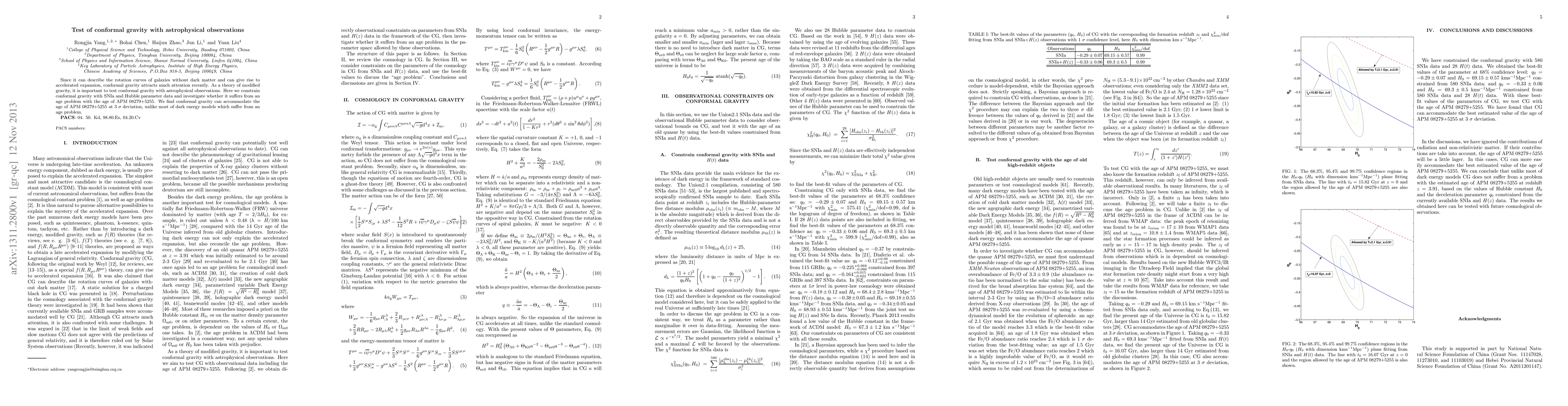 This study tests conformal gravity with astrophysical observations, finding it can accommodate the age of a distant galaxy without suffering from an age problem at 3 deviation, unlike most dark energy models.