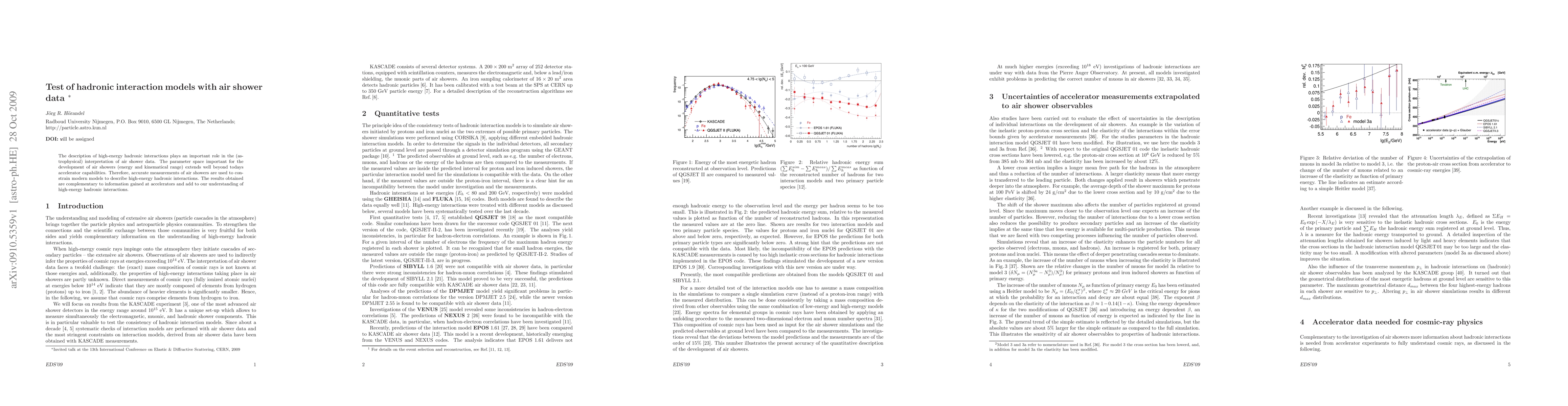 This paper tests modern models of high-energy hadronic interactions using air shower data, providing crucial insights beyond accelerator capabilities and enhancing our understanding of these interactions. The results complement accelerator-based findings and improve the interpretation of astrophysical air shower data.