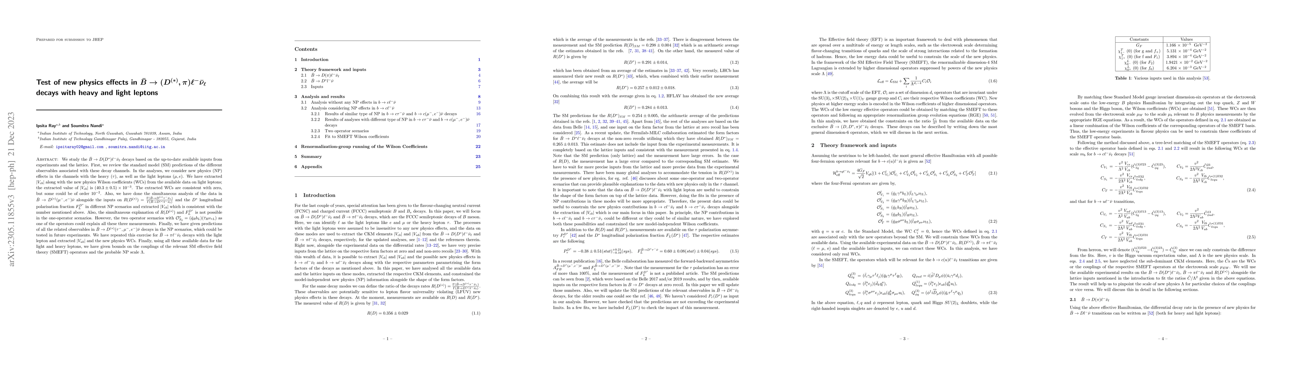 We study the $\bar{B}\to D(D^*) \ell^-\bar{\nu}_{\ell}$ decays based on the up-to-date available inputs from experiments and the lattice. First, we review the standard model (SM) predictions of the different observables associated with these decay channels. In the analyses, we consider new physics (NP) effects in the channels with the heavy ($\tau$), as well as the light leptons ($\mu, e$). We have extracted $|V_{cb}|$ along with the new physics Wilson coefficients (WCs) from the available data on light leptons; the extracted value of $|V_{cb}|$ is $(40.3 \pm 0.5)\times 10^{-3}$. The extracted WCs are zero consistent, but some could be of order $10^{-2}$. Also, we have done the simultaneous analysis of the data in $\bar{B} \to D^{(*)}(\mu^-,e^-)\bar{\nu}$ alongside the inputs on $R(D^{(*)}) = \frac{\Gamma(\bar{B}\to D^{(*)}\tau^-\bar{\nu}_{\tau})}{\Gamma(\bar{B}\to D^{(*)}\ell^-\bar{\nu}_{\ell})}$ and the $D^*$ longitudinal polarisation fraction $F_L^{D^*}$ in different NP scenarios and extracted $|V_{cb}|$ which is consistent with the number mentioned above. Also, the simultaneous explanation of $R(D^{(*)})$ and $F_L^{D^*}$ is not possible in the one-operator scenarios. However, the two operator scenarios with $\mathcal{O}_{S_2}^{\tau} = (\bar{q}_R b_L)(\bar{\tau}_R\nu_{\tau L})$ as one of the operators could explain all these three measurements. Finally, we have given predictions of all the related observables in $\bar{B} \to D^{(*)}(\tau^-,\mu^-,e^-)\bar{\nu}$ decays in the NP scenarios, which could be tested in future experiments. We have repeated this exercise for $\bar{B} \to \pi\ell^-\bar{\nu}_{\ell}$ decays with the light lepton and extracted $|V_{ub}|$ and the new WCs. Finally, using all these available data for the light and heavy leptons, we have given bounds on the couplings of the relevant SM effective field theory (SMEFT) operators and the probable NP scale $\Lambda$.