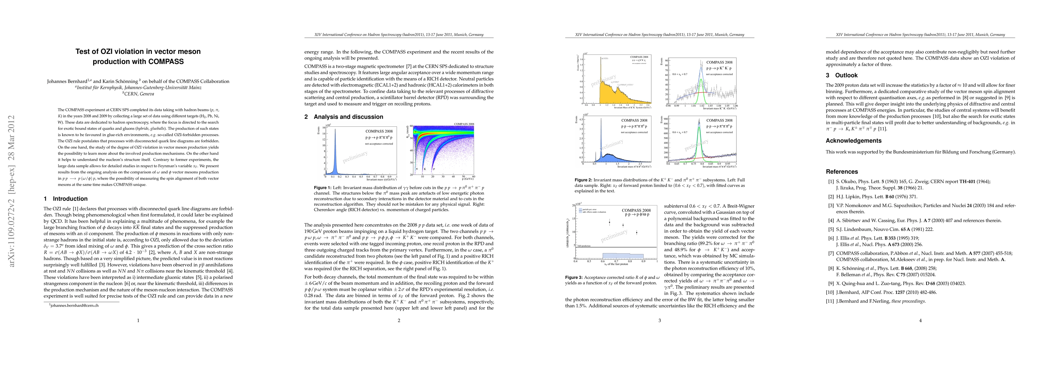 The COMPASS experiment at CERN SPS completed its data taking with hadron beams (p, \pi, K) in the years 2008 and 2009 by collecting a large set of data using different targets (H2, Pb, Ni, W). These data are dedicated to hadron spectroscopy, where the focus is directed to the search for exotic bound states of quarks and gluons (hybrids, glueballs). The production of such states is known to be favoured in glue-rich environments, e.g. so-called OZI-forbidden processes. The OZI rule postulates that processes with disconnected quark line diagrams are forbidden. On the one hand, the study of the degree of OZI violation in vector meson production yields the possibility to learn more about the involved production mechanisms. On the other hand it helps to understand the nucleon's structure itself. Contrary to former experiments, the large data sample allows for detailed studies in respect to Feynman's variable xF. We present results from the ongoing analysis on the comparison of \omega and \phi vector mesons production in pp->p(\omega/\phi)p, where the possibility of measuring the spin alignment of both vector mesons at the same time makes COMPASS unique.