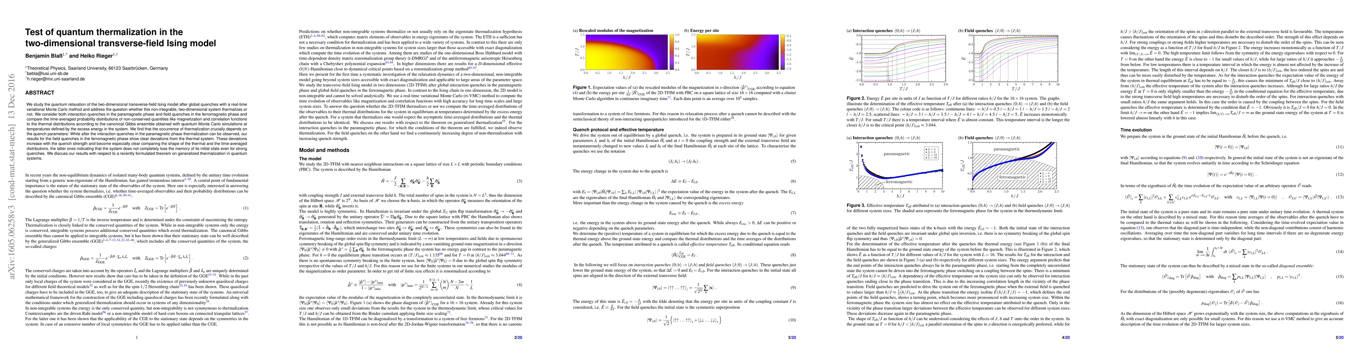 This study investigates the quantum thermalization of the two-dimensional transverse-field Ising model using a real-time variational Monte Carlo method after global quenches. The research finds that thermalization occurs after interaction quenches in the paramagnetic phase but not after field quenches in the ferromagnetic phase, indicating memory retention of the initial state even for strong quenches.
