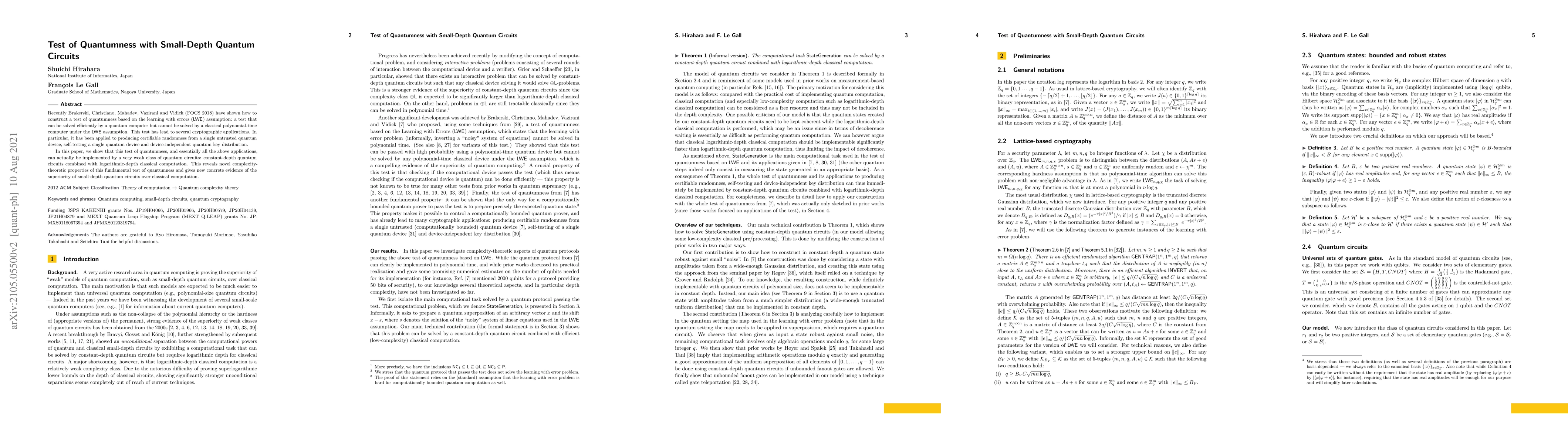 This paper demonstrates that a quantumness test based on the learning with errors assumption, which has significant cryptographic applications, can be implemented using small-depth quantum circuits and classical computation, revealing new complexity-theoretic insights and underscoring the advantages of such quantum circuits over classical methods.