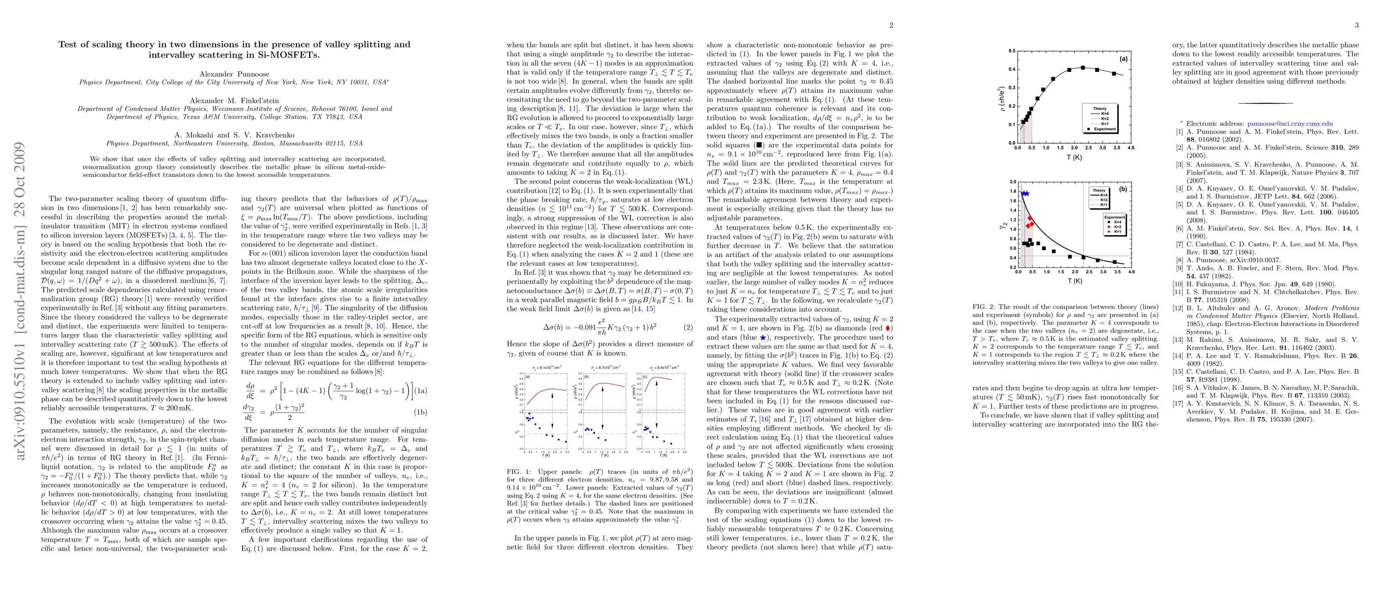 We show that once the effects of valley splitting and intervalley scattering are incorporated, renormalization group theory consistently describes the metallic phase in silicon metal-oxide-semiconductor field-effect transistors down to the lowest accessible temperatures.