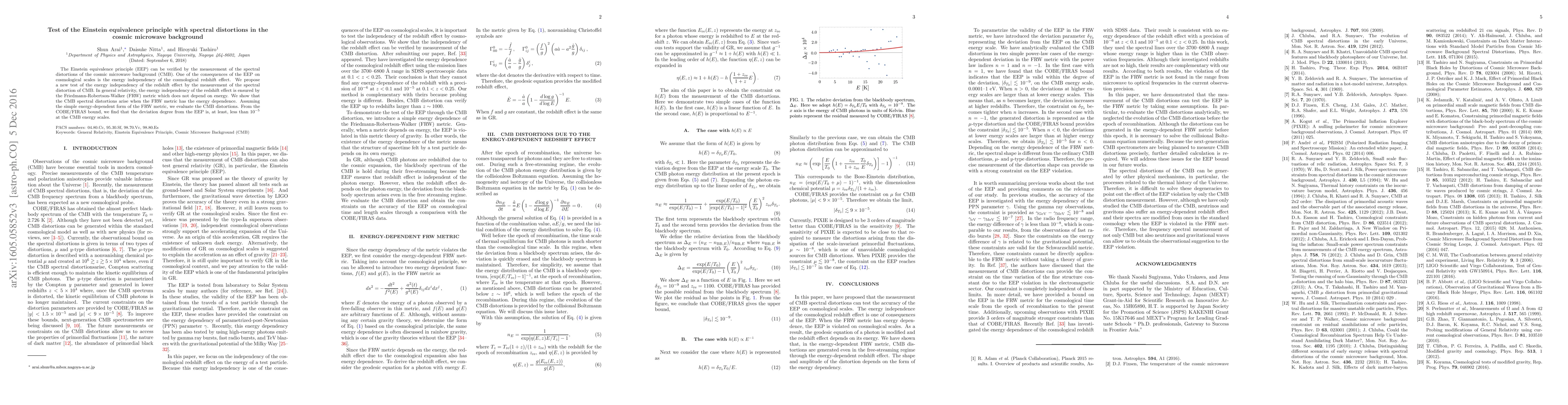 This paper tests the Einstein Equivalence Principle (EEP) by measuring spectral distortions in the Cosmic Microwave Background (CMB) due to an energy-dependent cosmological redshift effect. The study finds that the deviation from EEP, if any, is less than 10^{-9} at the CMB energy scale, consistent with current observational bounds.