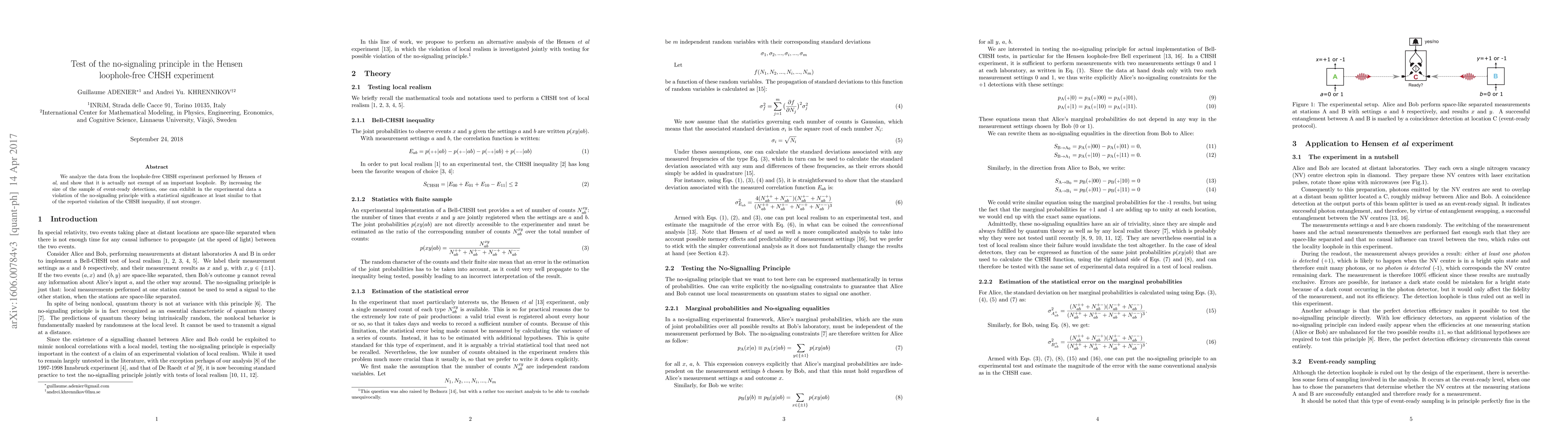 This paper reevaluates the Hensen "loophole-free CHSH experiment" and identifies a loophole that compromises the no-signaling principle, suggesting that the experimental data shows a significant violation of this principle comparable to the reported CHSH inequality violation.