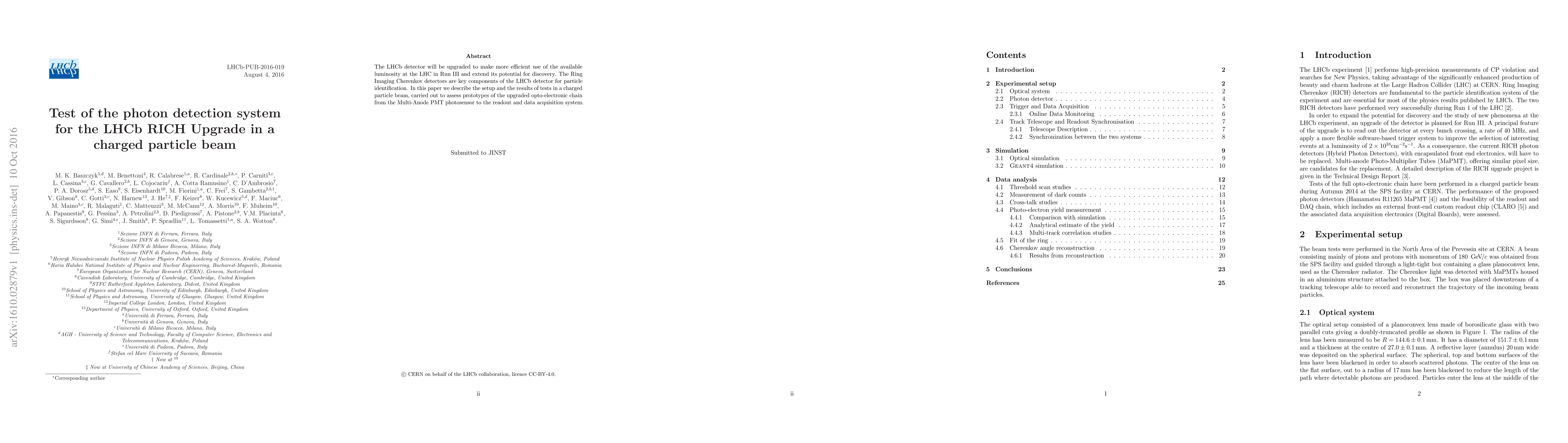 The LHCb detector will be upgraded to make more efficient use of the available luminosity at the LHC in Run III and extend its potential for discovery. The Ring Imaging Cherenkov detectors are key components of the LHCb detector for particle identification. In this paper we describe the setup and the results of tests in a charged particle beam, carried out to assess prototypes of the upgraded opto-electronic chain from the Multi-Anode PMT photosensor to the readout and data acquisition system.