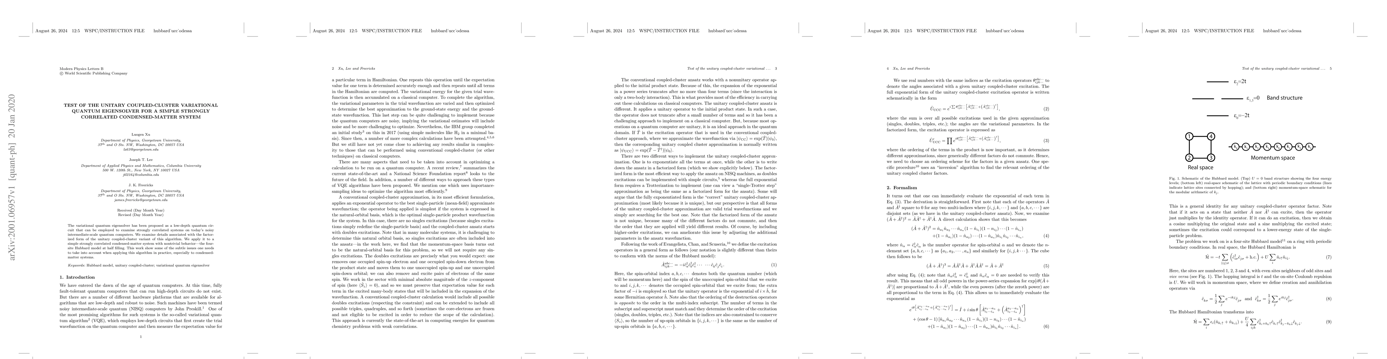The variational quantum eigensolver has been proposed as a low-depth quantum circuit that can be employed to examine strongly correlated systems on today's noisy intermediate-scale quantum computers. We examine details associated with the factorized form of the unitary coupled-cluster variant of this algorithm. We apply it to a simple strongly correlated condensed-matter system with nontrivial behavior---the four-site Hubbard model at half filling. This work show some of the subtle issues one needs to take into account when applying this algorithm in practice, especially to condensed-matter systems.