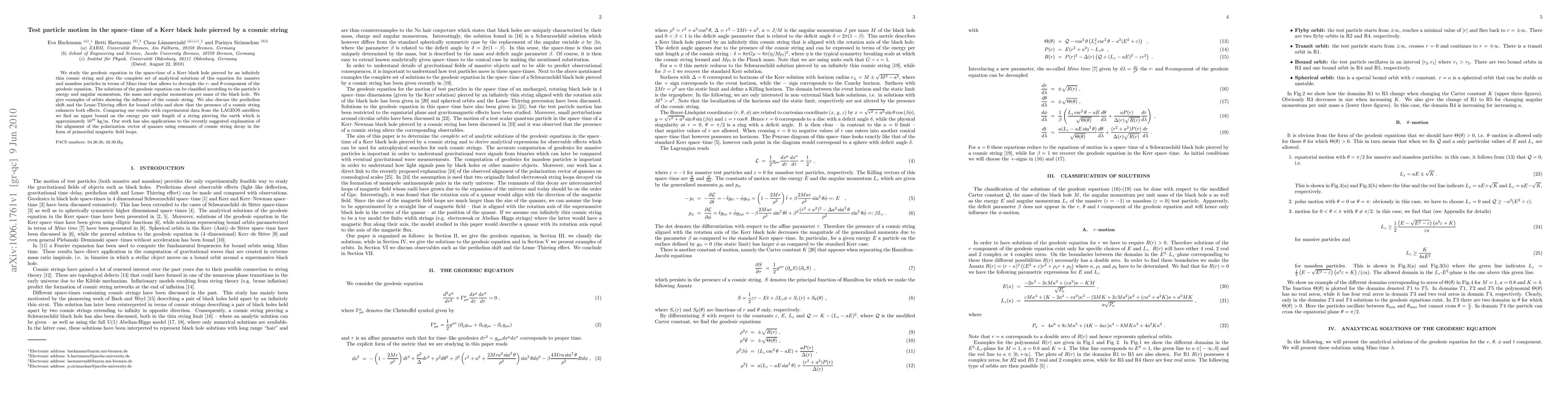 This paper provides analytical solutions for particle motion in the Kerr black hole space-time influenced by a cosmic string, showing enhanced perihelion shift and Lense-Thirring effect. It sets an upper bound on cosmic string energy per unit length and discusses its implications for cosmic string decay and quasar polarization alignment.