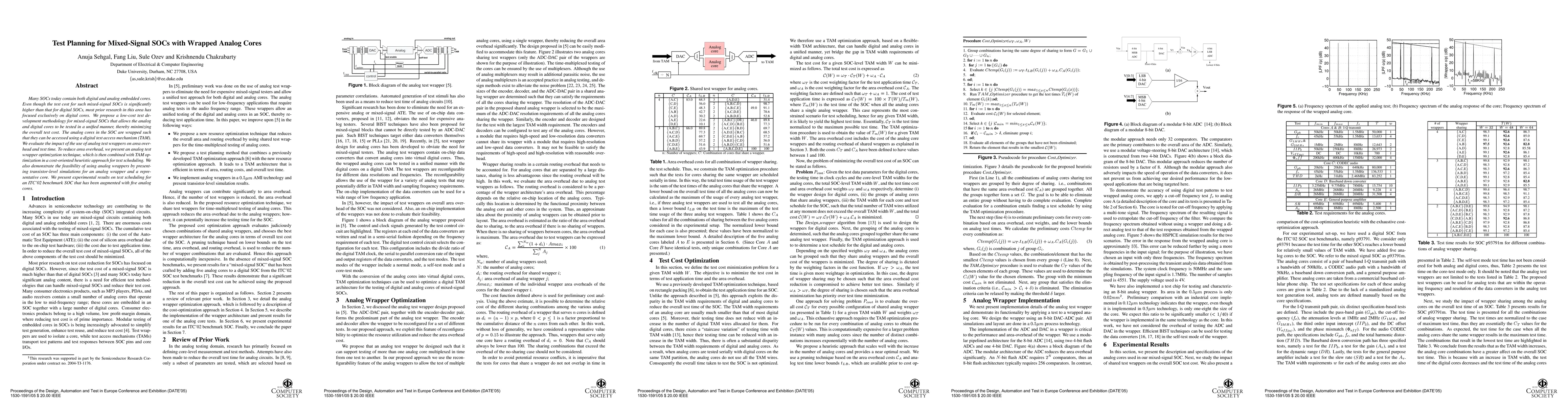 Many SOCs today contain both digital and analog embedded cores. Even though the test cost for such mixed-signal SOCs is significantly higher than that for digital SOCs, most prior research in this area has focused exclusively on digital cores. We propose a low-cost test development methodology for mixed-signal SOCs that allows the analog and digital cores to be tested in a unified manner, thereby minimizing the overall test cost. The analog cores in the SOC are wrapped such that they can be accessed using a digital test access mechanism (TAM). We evaluate the impact of the use of analog test wrappers on area overhead and test time. To reduce area overhead, we present an analog test wrapper optimization technique, which is then combined with TAM optimization in a cost-oriented heuristic approach for test scheduling. We also demonstrate the feasibility of using analog wrappers by presenting transistor-level simulations for an analog wrapper and a representative core. We present experimental results on test scheduling for an ITC'02 benchmark SOC that has been augmented with five analog cores.