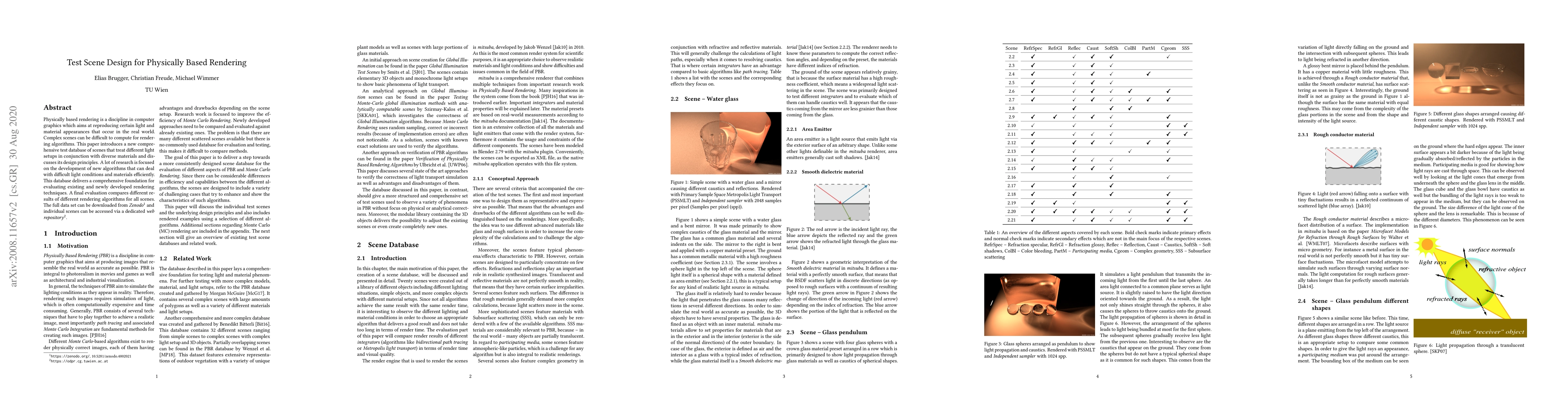 A new test database for physically based rendering is introduced to evaluate existing and newly developed rendering techniques, focusing on light setups and materials, providing a comprehensive foundation for assessing rendering algorithms.