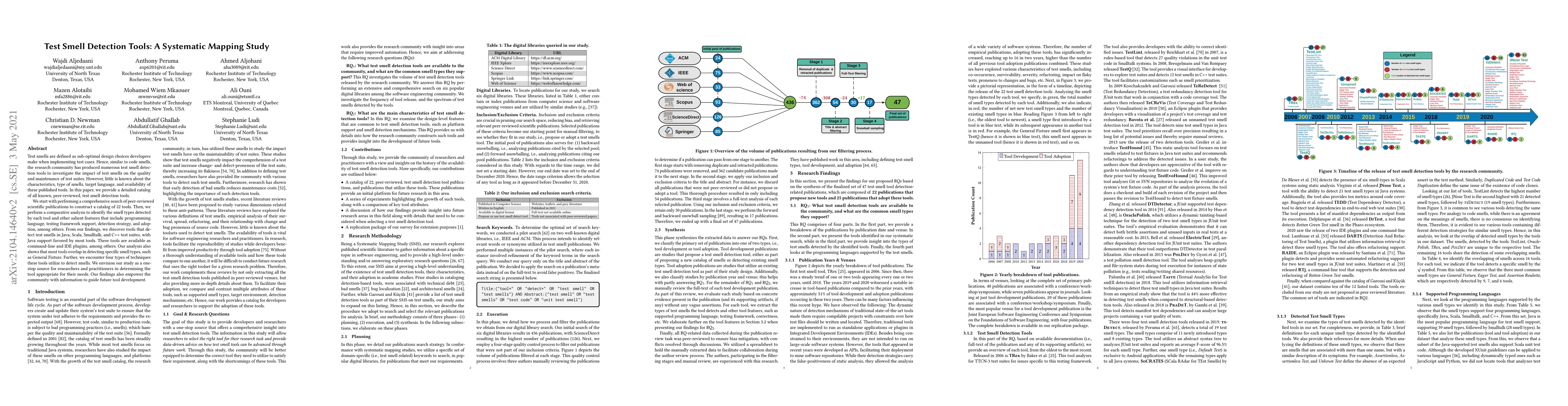 This paper catalogs and analyzes 22 peer-reviewed test smell detection tools, identifying their characteristics, supported languages, and detection strategies. The study reveals that most tools target Java and overlap in detecting specific smell types, with implications for future tool development and selection.