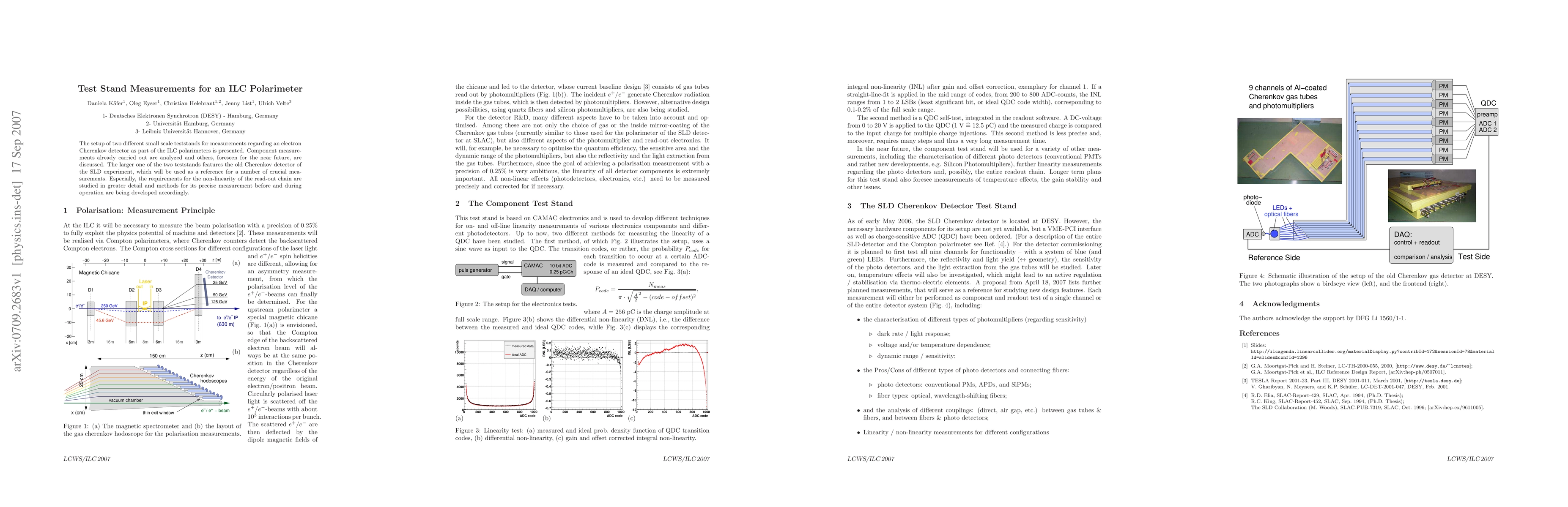 The setup of two different small scale teststands for measurements regarding an electron Cherenkov detector as part of the ILC polarimeters is presented. Component measurements already carried out are analyzed and others, foreseen for the near future, are discussed. The larger one of the two teststands features the old Cherenkov detector of the SLD experiment, which will be used as a reference for a number of crucial measurements. Especially, the requirements for the non-linearity of the read-out chain are studied in greater detail and methods for its precise measurement before and during operation are being developed accordingly.