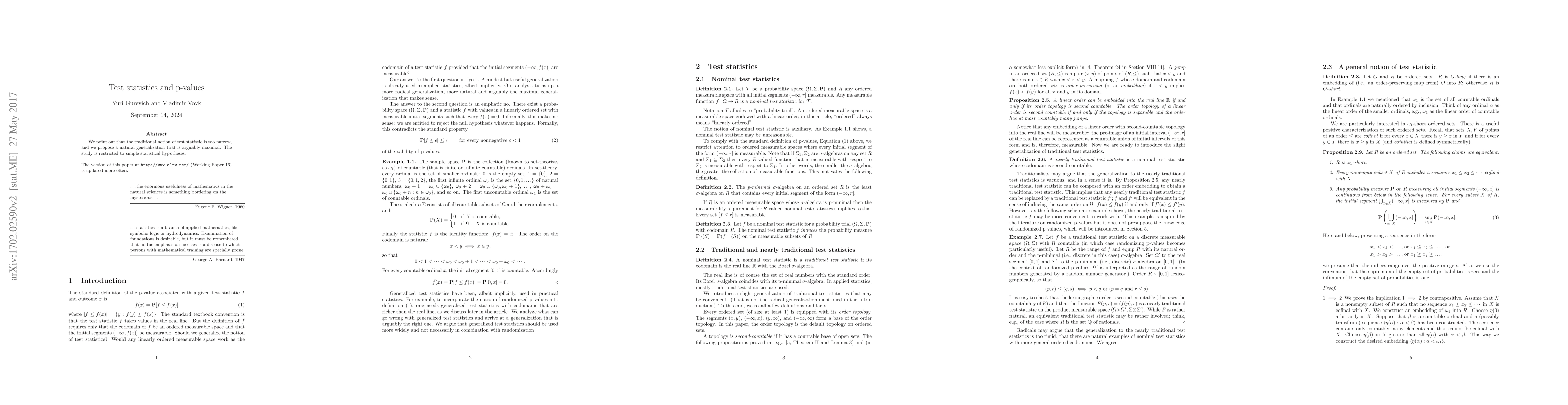 We point out that the traditional notion of test statistic is too narrow, and we propose a natural generalization that is arguably maximal. The study is restricted to simple statistical hypotheses.