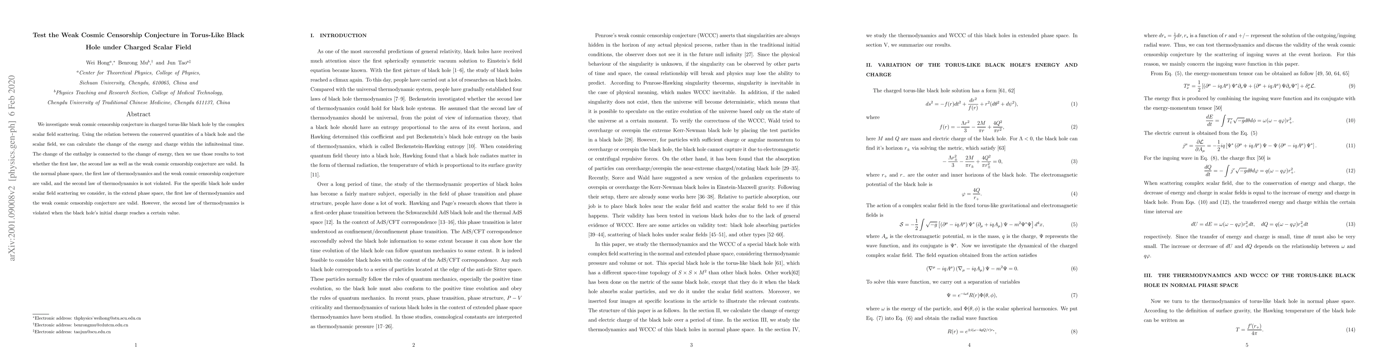 The study investigates the validity of the weak cosmic censorship conjecture in charged torus-like black holes under charged scalar field scattering, confirming adherence to the first law and weak cosmic censorship conjecture in normal and extended phase spaces, while noting violations of the second law of thermodynamics for specific initial charges.