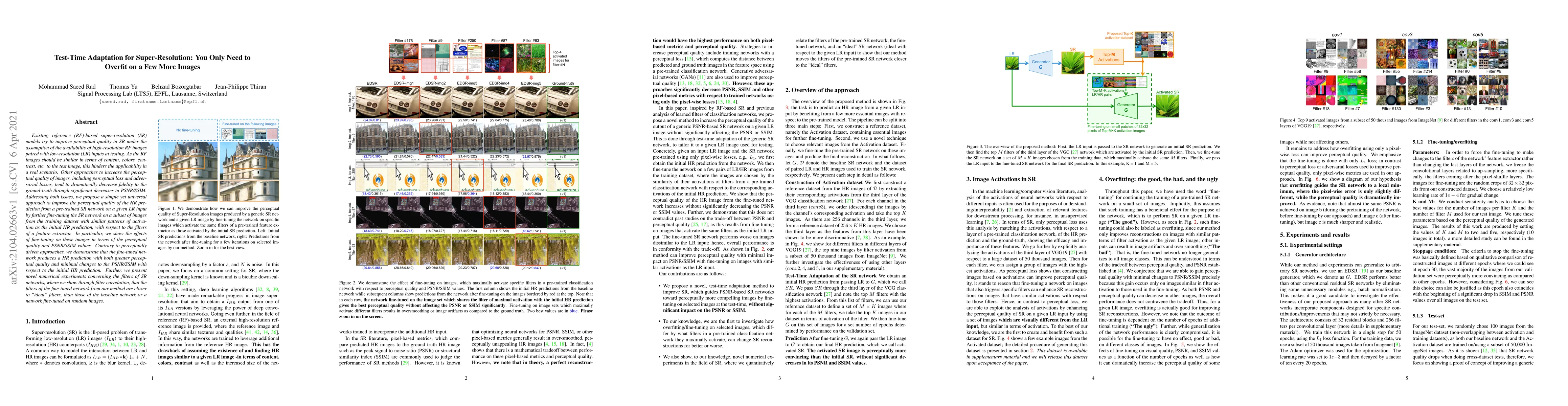 Existing reference (RF)-based super-resolution (SR) models try to improve perceptual quality in SR under the assumption of the availability of high-resolution RF images paired with low-resolution (LR) inputs at testing. As the RF images should be similar in terms of content, colors, contrast, etc. to the test image, this hinders the applicability in a real scenario. Other approaches to increase the perceptual quality of images, including perceptual loss and adversarial losses, tend to dramatically decrease fidelity to the ground-truth through significant decreases in PSNR/SSIM. Addressing both issues, we propose a simple yet universal approach to improve the perceptual quality of the HR prediction from a pre-trained SR network on a given LR input by further fine-tuning the SR network on a subset of images from the training dataset with similar patterns of activation as the initial HR prediction, with respect to the filters of a feature extractor. In particular, we show the effects of fine-tuning on these images in terms of the perceptual quality and PSNR/SSIM values. Contrary to perceptually driven approaches, we demonstrate that the fine-tuned network produces a HR prediction with both greater perceptual quality and minimal changes to the PSNR/SSIM with respect to the initial HR prediction. Further, we present novel numerical experiments concerning the filters of SR networks, where we show through filter correlation, that the filters of the fine-tuned network from our method are closer to "ideal" filters, than those of the baseline network or a network fine-tuned on random images.