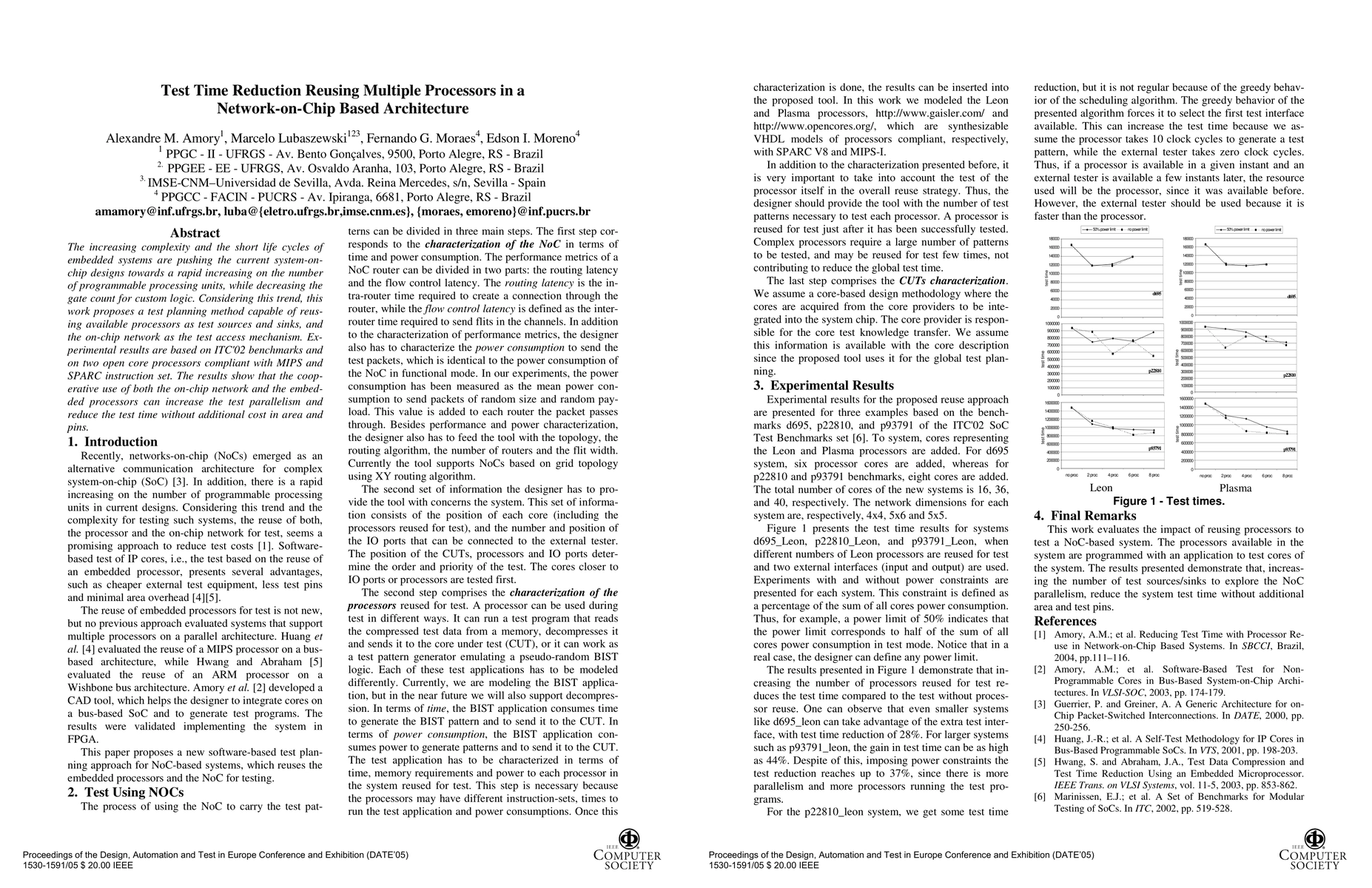The increasing complexity and the short life cycles of embedded systems are pushing the current system-on-chip designs towards a rapid increasing on the number of programmable processing units, while decreasing the gate count for custom logic. Considering this trend, this work proposes a test planning method capable of reusing available processors as test sources and sinks, and the on-chip network as the test access mechanism. Experimental results are based on ITC'02 benchmarks and on two open core processors compliant with MIPS and SPARC instruction set. The results show that the cooperative use of both the on-chip network and the embedded processors can increase the test parallelism and reduce the test time without additional cost in area and pins.