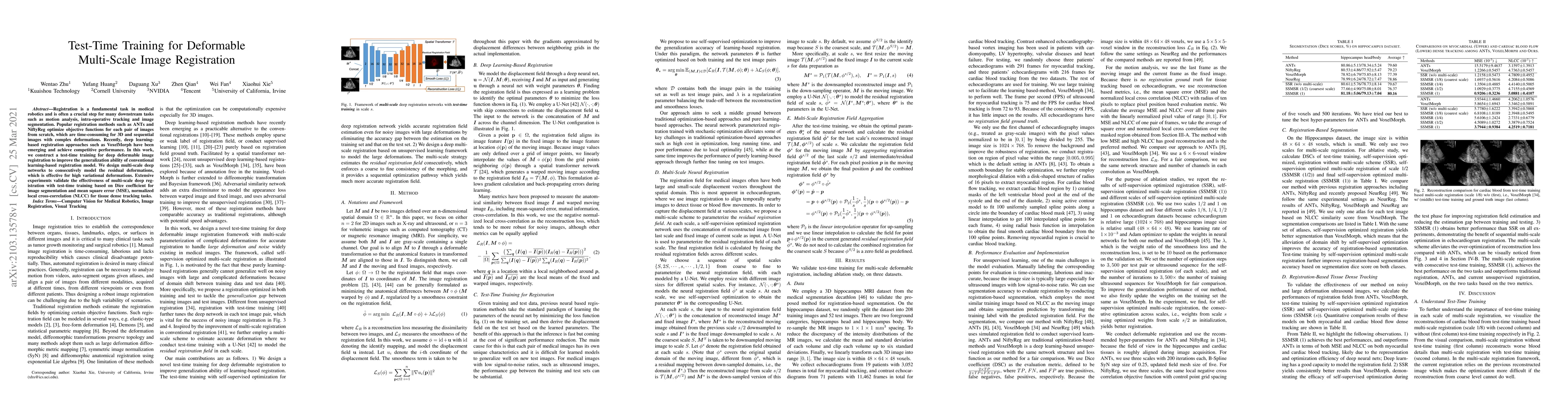 This paper proposes a test-time training method for deep deformable image registration to enhance model generalization. It utilizes multi-scale networks to model residual deformations effectively, validated through experiments on image segmentation and tissue tracking tasks.