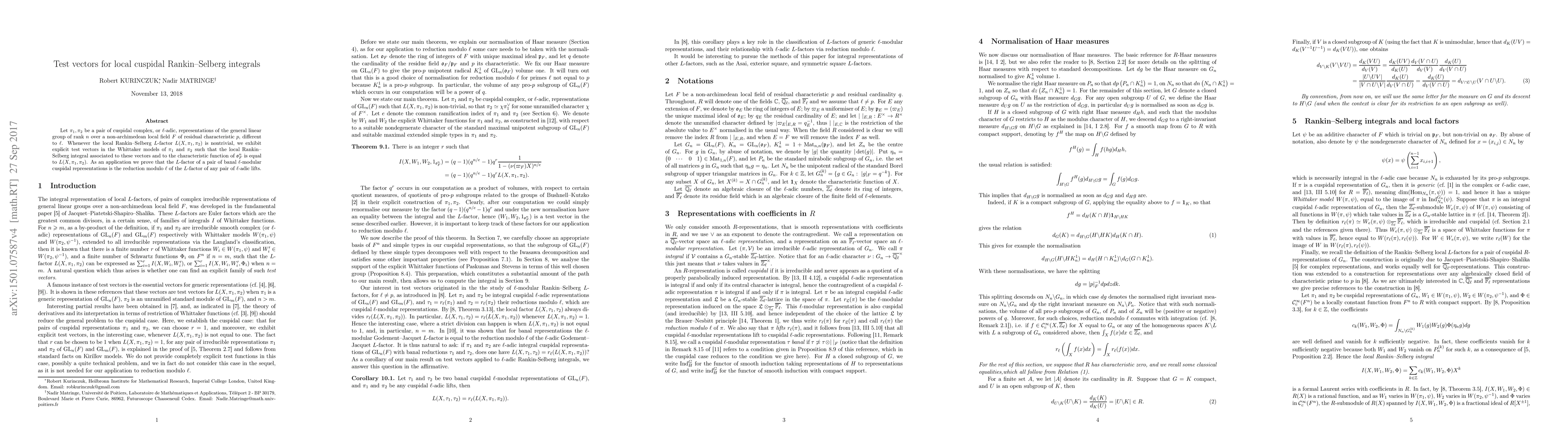 This paper introduces explicit test vectors for local cuspidal Rankin-Selberg integrals of GL(n), demonstrating their equality to nontrivial local Rankin-Selberg L-factors. The study also explores the reduction modulo $\ell$ of $\ell$-adic L-factors using these test vectors.