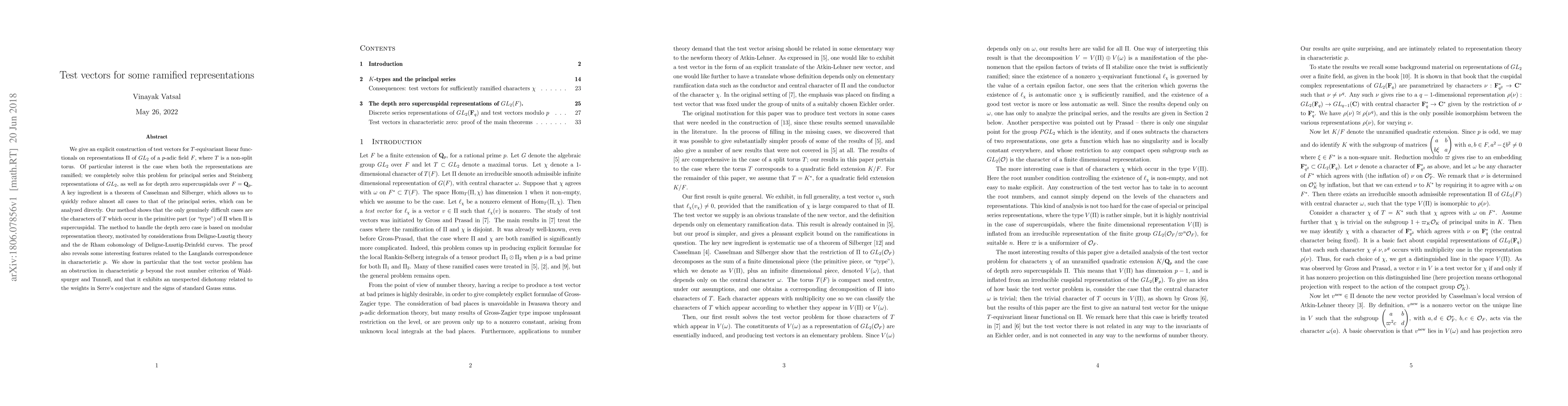 We give an explicit construction of test vectors for $T$-equivariant linear functionals on representations $\Pi$ of $GL_2$ of a $p$-adic field $F$, where $T$ is a non-split torus. Of particular interest is the case when both the representations are ramified; we completely solve this problem for principal series and Steinberg representations of $GL_2$, as well as for depth zero supercuspidals over $\mathbf{Q}_p$. A key ingredient is a theorem of Casselman and Silberger, which allows us to quickly reduce almost all cases to that of the principal series, which can be analyzed directly. Our method shows that the only genuinely difficult cases are the characters of $T$ which occur in the primitive part (or "type") of $\Pi$ when $\Pi$ is supercuspidal. The method to handle the depth zero case is based on modular representation theory, motivated by considerations from Deligne-Lusztig theory and the de Rham cohomology of Deligne-Lusztig-Drinfeld curves. The proof also reveals some interesting features related to the Langlands correspondence in characteristic $p$. We show in particular that the test vector problem has an obstruction in characteristic $p$ beyond the root number criterion of Waldspurger and Tunnell, and exhibits an unexpected dichotomy related to the weights in Serre's conjecture and the signs of standard Gauss sums.
