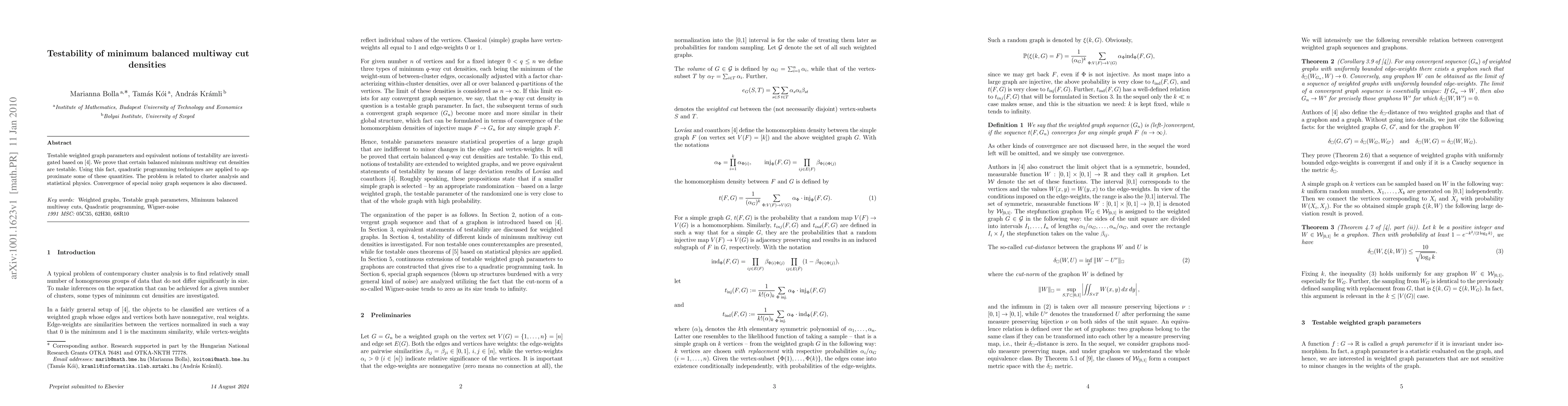 This paper investigates the testability of minimum balanced multiway cut densities in weighted graphs, proving their testability and applying quadratic programming techniques to approximate these densities. The study connects these findings to cluster analysis and statistical physics, and discusses the convergence of noisy graph sequences.
