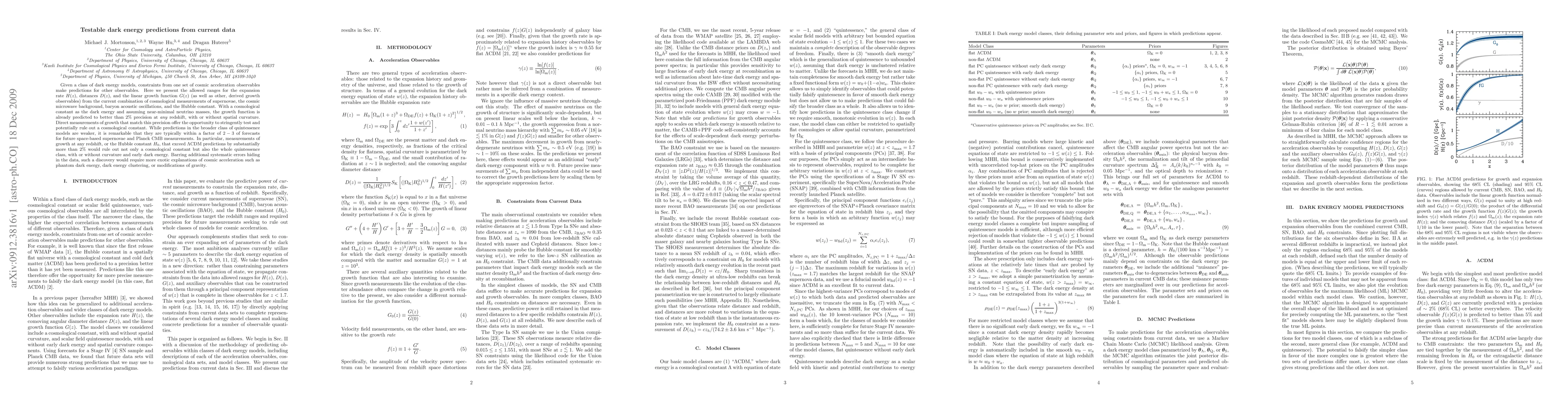 This paper explores predictions from a class of dark energy models, deriving constraints on expansion rate, distances, and growth functions from current cosmological data. It finds that precise measurements of the growth function can test the cosmological constant model, with deviations exceeding 2% ruling out both the cosmological constant and quintessence models, necessitating more exotic explanations for cosmic acceleration.