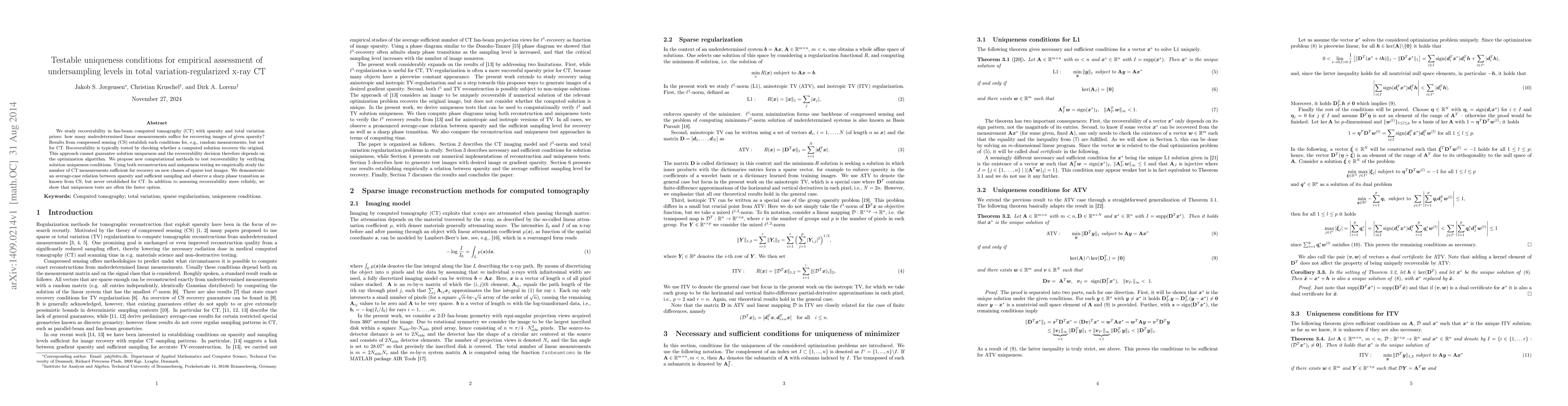 This paper proposes new computational methods to verify solution uniqueness for assessing undersampling levels in total variation-regularized x-ray CT reconstructions, demonstrating a phase transition in the relationship between sparsity and sufficient sampling, akin to compressed sensing.