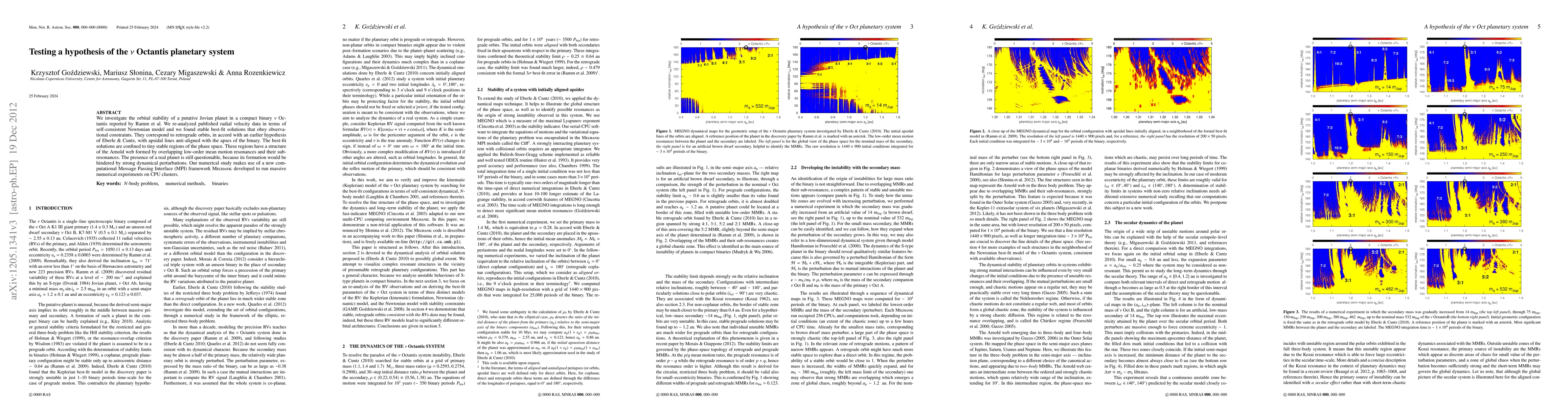 We investigate the orbital stability of a putative Jovian planet in a compact binary \nu Octantis reported by Ramm et al. We re-analyzed published radial velocity data in terms of self-consistent Newtonian model and we found stable best-fit solutions that obey observational constraints. They correspond to retrograde orbits, in accord with an earlier hypothesis of Eberle & Cuntz, with apsidal lines anti-aligned with the apses of the binary. The best-fit solutions are confined to tiny stable regions of the phase space. These regions have a structure of the Arnold web formed by overlapping low-order mean motion resonances and their sub-resonances. The presence of a real planet is still questionable, because its formation would be hindered by strong dynamical perturbations. Our numerical study makes use of a new computational Message Passing Interface (MPI) framework MECHANIC developed to run massive numerical experiments on CPU clusters.