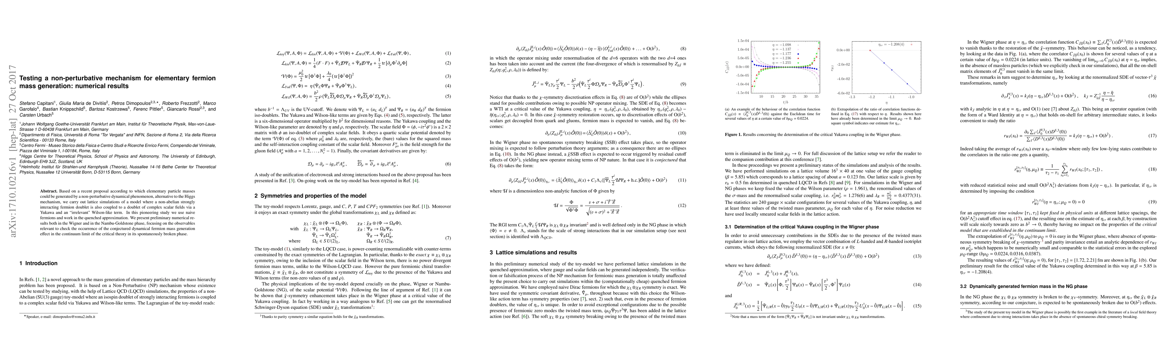 This paper explores a non-perturbative mechanism for generating elementary fermion masses through lattice simulations of a model involving strongly interacting fermion doublets and complex scalar fields. Preliminary numerical results from the Wigner and Nambu-Goldstone phases are presented to investigate the proposed dynamical fermion mass generation effect.