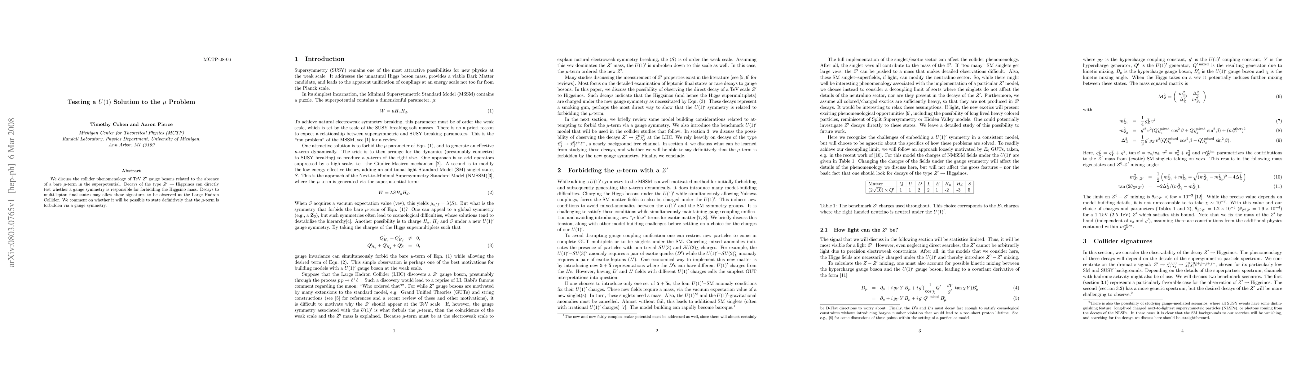 We discuss the collider phenomenology of TeV Z' gauge bosons related to the absence of a bare mu-term in the superpotential. Decays of the type Z' --> Higgsinos can directly test whether a gauge symmetry is responsible for forbidding the Higgsino mass. Decays to multi-lepton final states may allow these signatures to be observed at the Large Hadron Collider. We comment on whether it will be possible to state definitively that the mu-term is forbidden via a gauge symmetry.