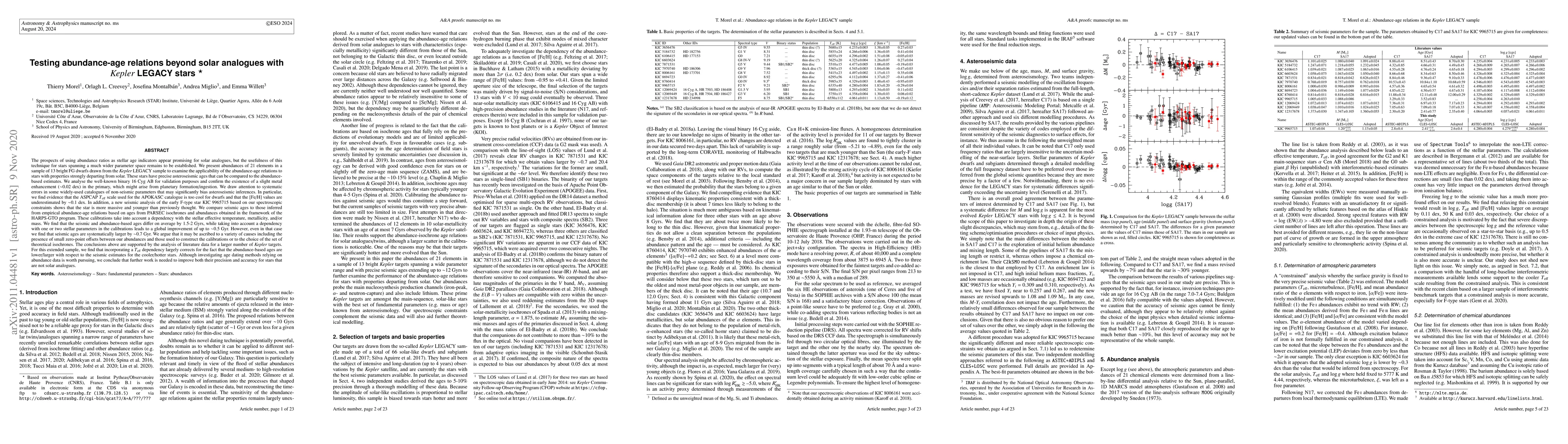 We present abundances of 21 elements in a sample of 13 bright FG dwarfs drawn from the Kepler LEGACY sample to examine the applicability of the abundance-age relations to stars with properties strongly departing from solar. These stars have precise asteroseismic ages that can be compared to the abundance-based estimates. We analyse the well-known binary 16 Cyg AB for validation purposes and confirm the existence of a slight metal enhancement (~0.02 dex) in the primary, which might arise from planetary formation/ingestion. We draw attention to systematic errors in some widely-used catalogues of non-seismic parameters that may significantly bias asteroseismic inferences. In particular, we find evidence that the ASPCAP Teff scale used for the APOKASC catalogue is too cool for dwarfs and that the [Fe/H] values are underestimated by ~0.1 dex. We compare seismic ages to those inferred from empirical abundance-age relations based on ages from PARSEC isochrones and abundances obtained in the framework of the HARPS-GTO program. These calibrations take into account a dependency with the stellar effective temperature, metallicity, and/or mass. We find that the seismic and abundance-based ages differ on average by 1.5-2 Gyrs, while taking into account a dependency with one or two stellar parameters in the calibrations leads to a global improvement of up to ~0.5 Gyr. However, even in that case we find that seismic ages are systematically larger by ~0.7 Gyr. We argue that it may be ascribed to a variety of causes including the presence of small zero-point offsets between our abundances and those used to construct the calibrations or to the choice of the set of theoretical isochrones. The conclusions above are supported by the analysis of literature data for a larger number of Kepler targets. [Abridged]