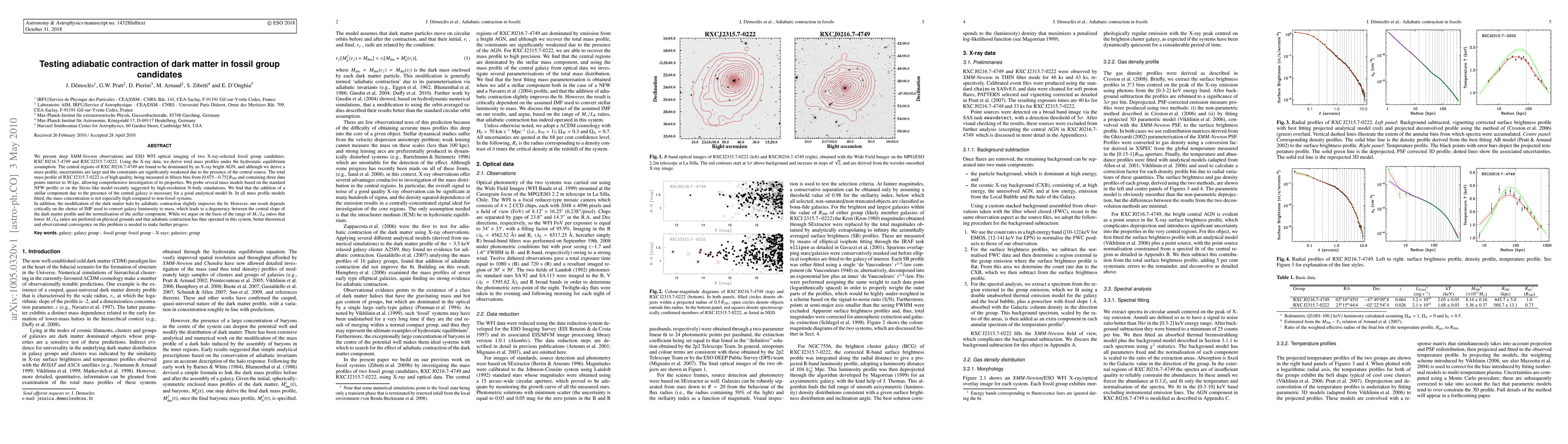 We present deep XMM observations and ESO WFI optical imaging of two X-ray-selected fossil group candidates, RXCJ0216.7-4749 and RXCJ2315.7-0222. Using the X-ray data, we derive total mass profiles under the hydrostatic equilibrium assumption. The central regions of RXCJ0216.7-4749 are found to be dominated by an X-ray bright AGN, and although we derive a mass profile, uncertainties are large and the constraints are significantly weakened due to the presence of the central source. The total mass profile of RXCJ2315.7-0222 is of high quality, being measured in fifteen bins from [0.075 - 0.75]R500 and containing three data points interior to 30 kpc, allowing comprehensive investigation of its properties. We probe several mass models based on the standard NFW profile or on the Sersic-like model recently suggested by high-resolution N-body simulations. We find that the addition of a stellar component due to the presence of the central galaxy is necessary for a good analytical model fit. In all mass profile models fitted, the mass concentration is not especially high compared to non-fossil systems. In addition, the modification of the dark matter halo by adiabatic contraction slightly improves the fit. However, our result depends critically on the choice of IMF used to convert galaxy luminosity to mass, which leads to a degeneracy between the central slope of the dark matter profile and the normalisation of the stellar component. While we argue on the basis of the range of M_*/L_R ratios that lower M_*/L_R ratios are preferred on physical grounds and that adiabatic contraction has thus operated in this system, better theoretical and observational convergence on this problem is needed to make further progess.