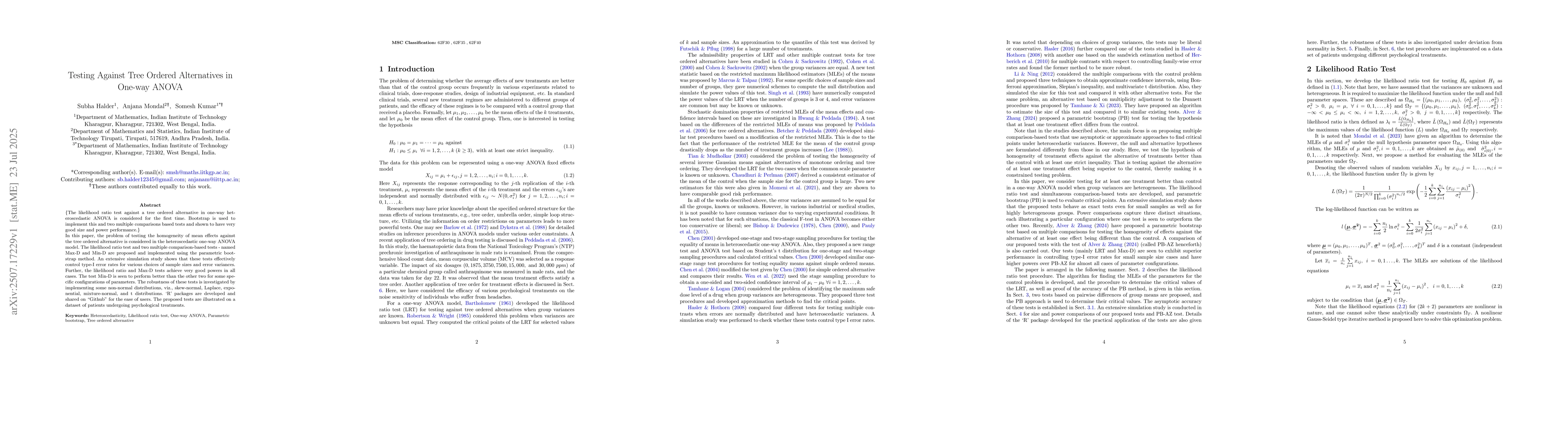 The work is novel in proposing and implementing LRT, Max-D, and Min-D tests specifically designed for testing equality of mean effects against tree-ordered alternatives in heteroscedastic one-way ANOVA, supported by extensive simulations and real-data illustration.