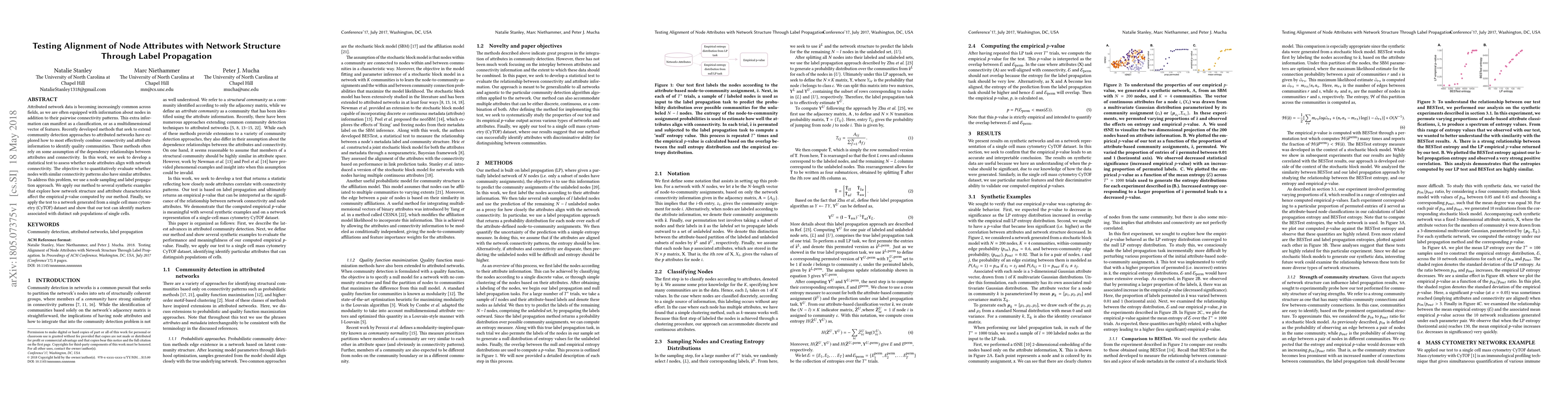 Researchers developed a statistical test to assess whether node attributes align with network connectivity in attributed networks. The test uses node sampling and label propagation to identify whether nodes with similar connectivity patterns also have similar attributes.