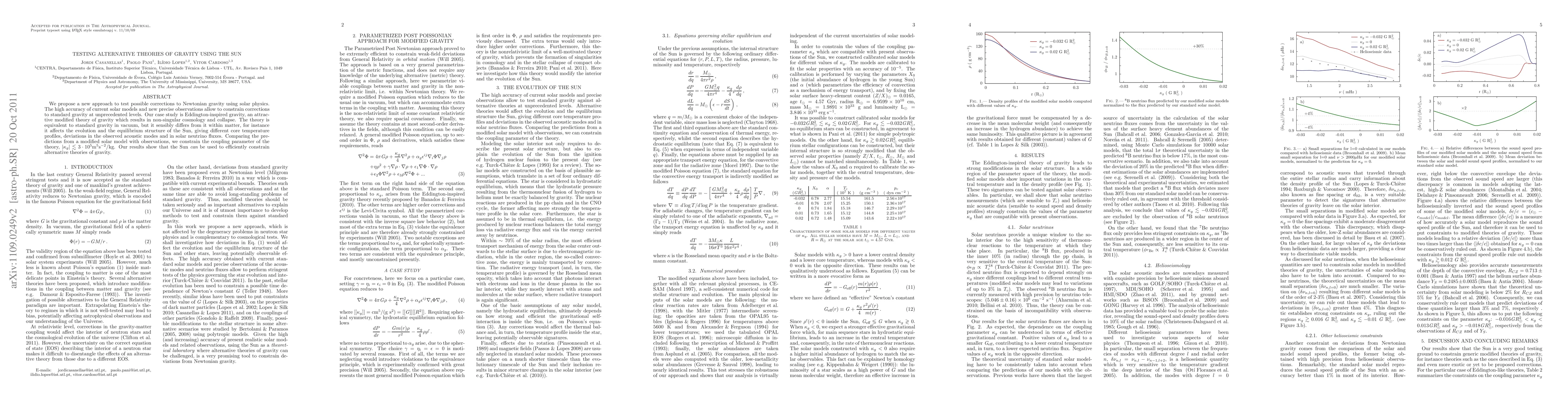 This paper proposes a new method to test modified gravity theories using solar physics, focusing on Eddington-inspired gravity. The study constrains the theory's coupling parameter to |kappa_g| < 3x10^5 m^5 s^2 / kg, demonstrating that the Sun can effectively limit alternative gravity theories.