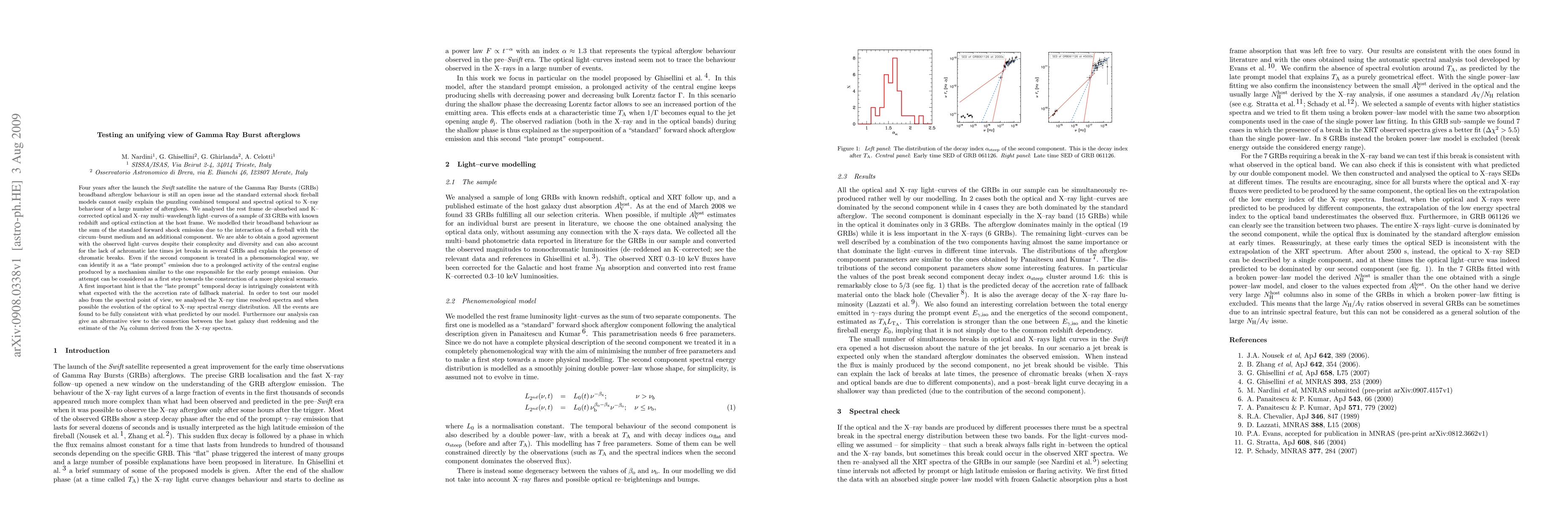 Four years after the launch the Swift satellite the nature of the Gamma Ray Bursts (GRBs) broadband afterglow behaviour is still an open issue ad the standard external shock fireball models cannot easily explain the puzzling combined temporal and spectral optical to X-ray behaviour of a large number of afterglows. We analysed the rest frame de-absorbed and K- corrected optical and X-ray multi-wavelength light-curves of a sample of 33 GRBs with known redshift and optical extinction at the host frame. We modelled their broadband behaviour as the sum of the standard forward shock emission due to the interaction of a fireball with the circum-burst medium and an additional component. We are able to obtain a good agreement with the observed light-curves despite their complexity and diversity and can also account for the lack of achromatic late times jet breaks in several GRBs and explain the presence of chromatic breaks. Even if the second component is treated in a phenomenological way, we can identify it as a "late prompt" emission due to a prolonged activity of the central engine produced by a mechanism similar to the one responsible for the early prompt emission. Our attempt can be considered as a first step towards the construction of a more physical scenario. A first important hint is that the "late prompt" temporal decay is intriguingly consistent with what expected with the the accretion rate of fallback material. In order to test our model also from the spectral point of view, we analysed the X-ray time resolved spectra and when possible the evolution of the optical to X-ray spectral energy distribution. All the events are found to be fully consistent with what predicted by our model.