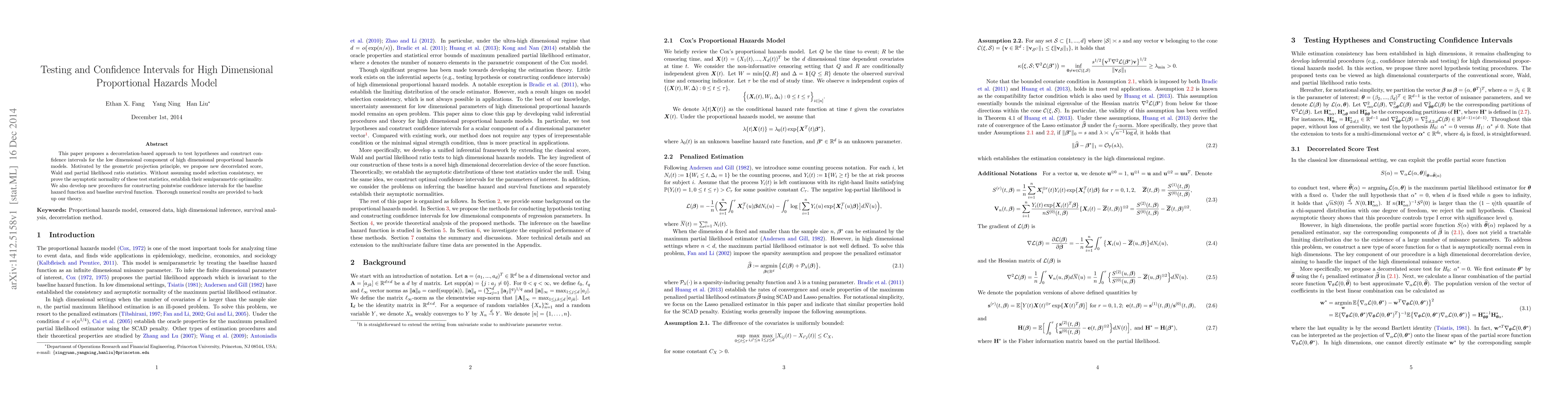 This paper introduces a decorrelation-based method for testing hypotheses and constructing confidence intervals in high-dimensional proportional hazards models, proving the asymptotic normality and semiparametric optimality of proposed statistics. It also develops new procedures for confidence intervals of the baseline hazard and survival functions, supported by numerical results.