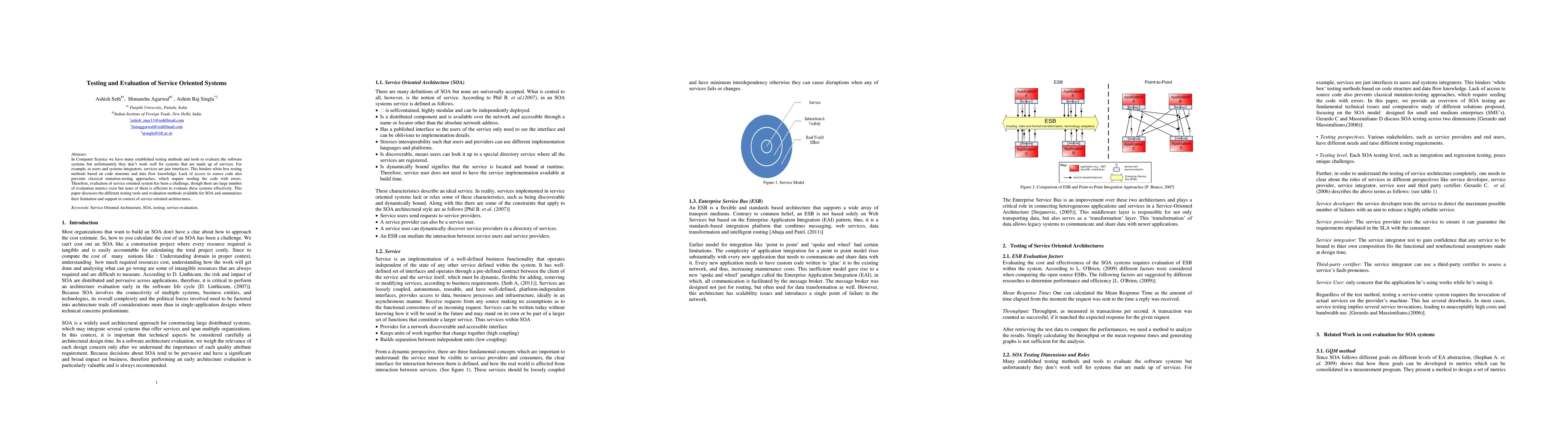 This paper explores various testing tools and evaluation methods for service-oriented systems, highlighting their limitations and effectiveness in assessing service-oriented architectures. It underscores the ongoing challenge of finding efficient metrics for evaluating these systems.